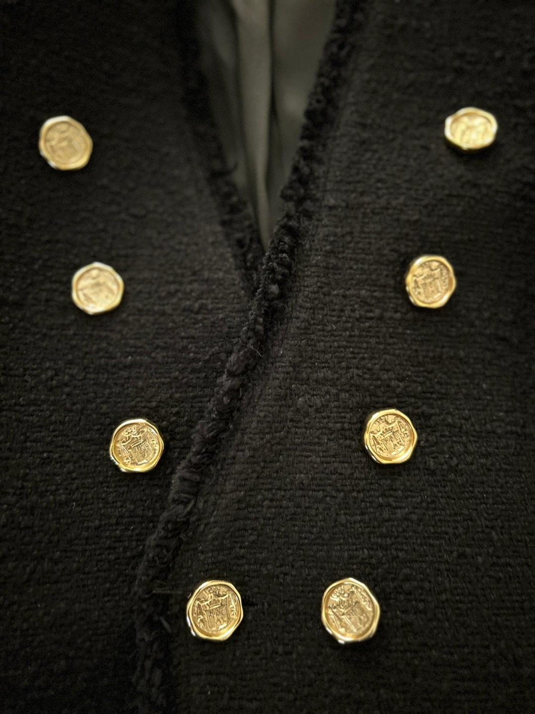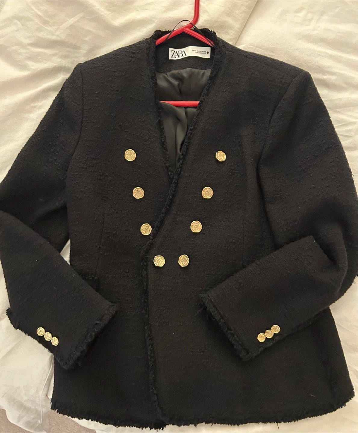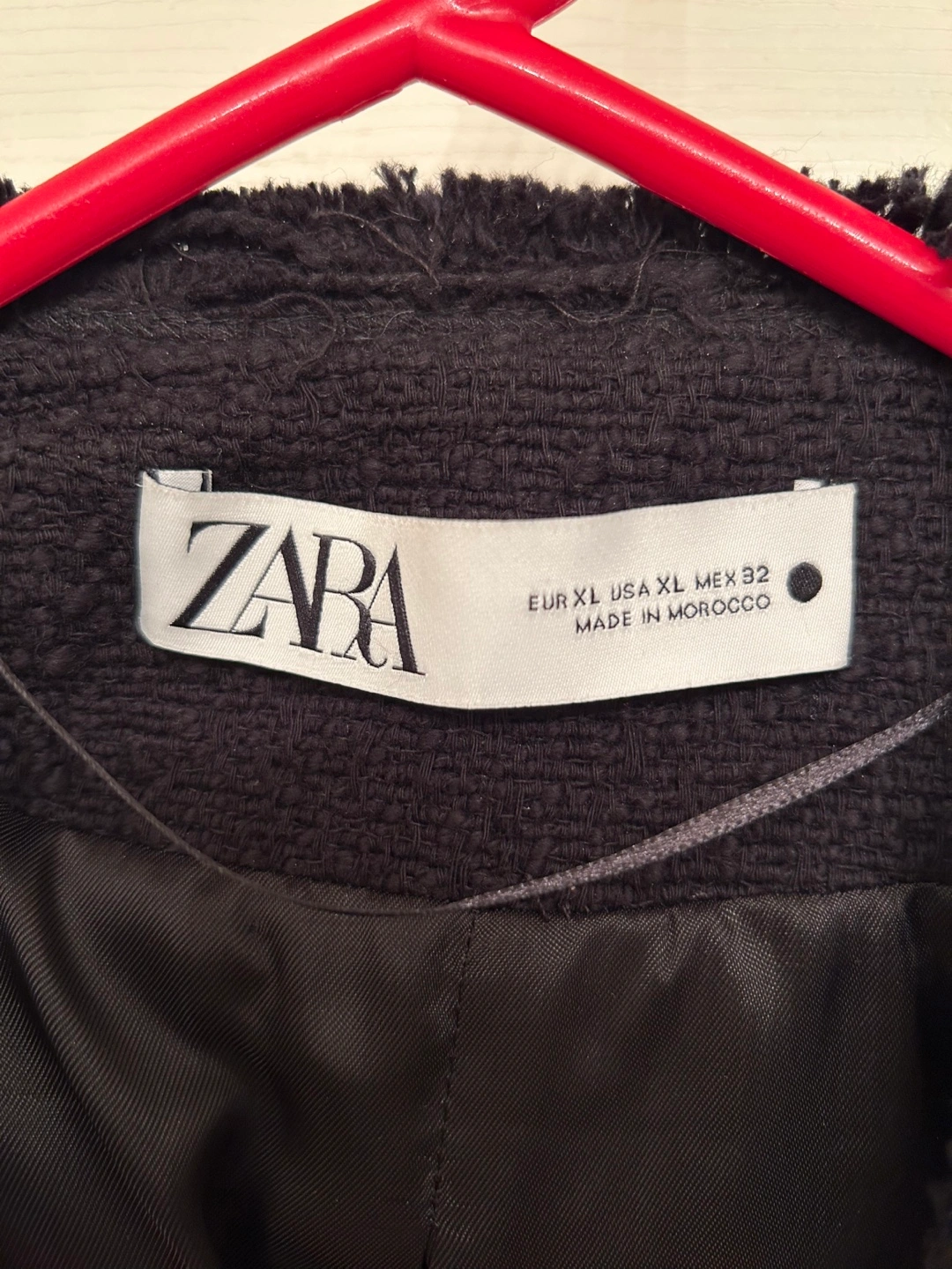 361ZARA Black Tweed Blazer – Size XL Brand new, never worn. Classic black tweed with elegant gold-tone buttons. A chic wardrobe staple that instantly elevates any outfit. Note: Although it is labeled XL, I found that the fit is on the smaller side. It would best suit someone who typically wears a Large.