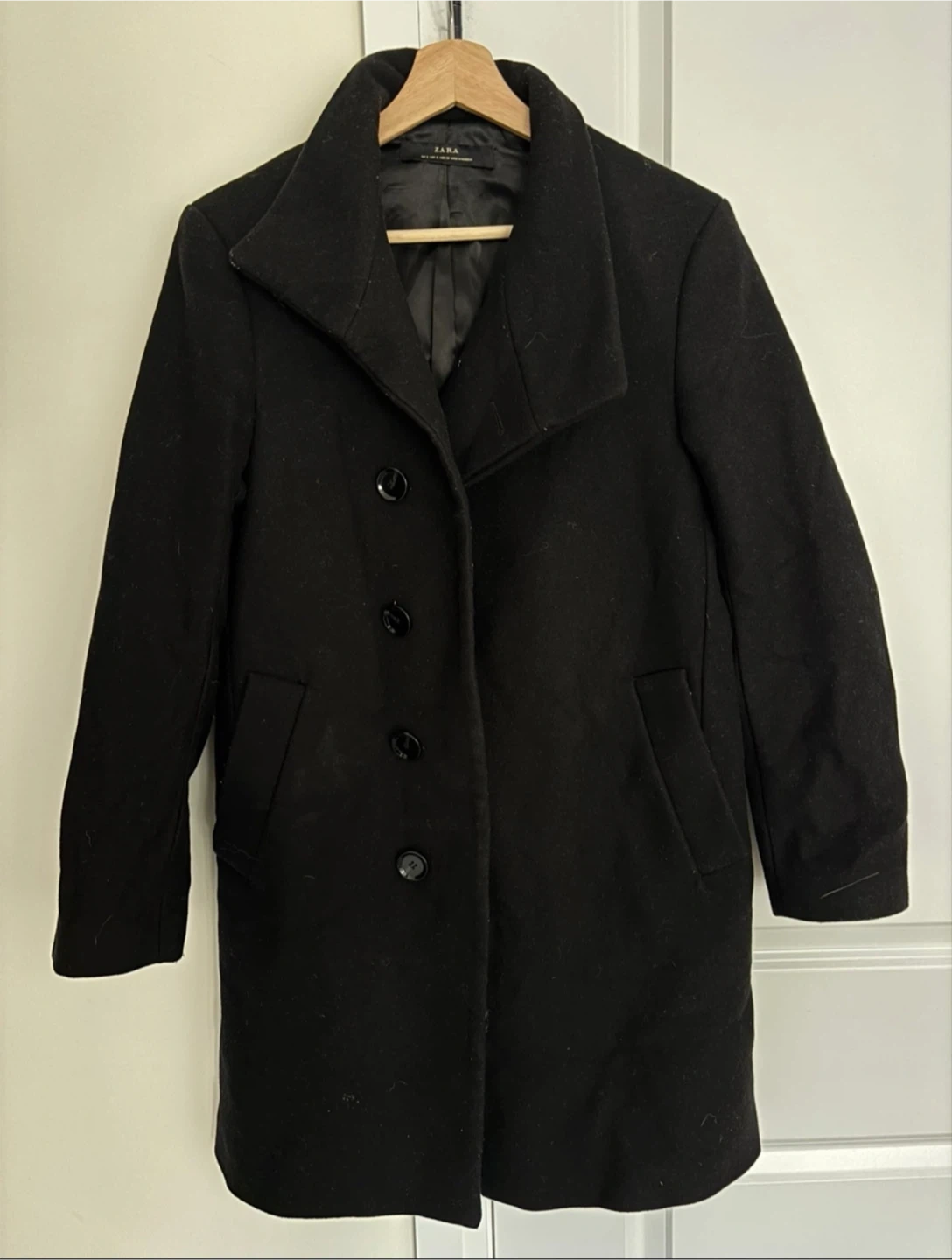 91Selling a classic Zara pea coat in black! It's a size small and made from a wool blend, perfect for staying warm during the colder months. The coat is in great condition and ready for a new home!