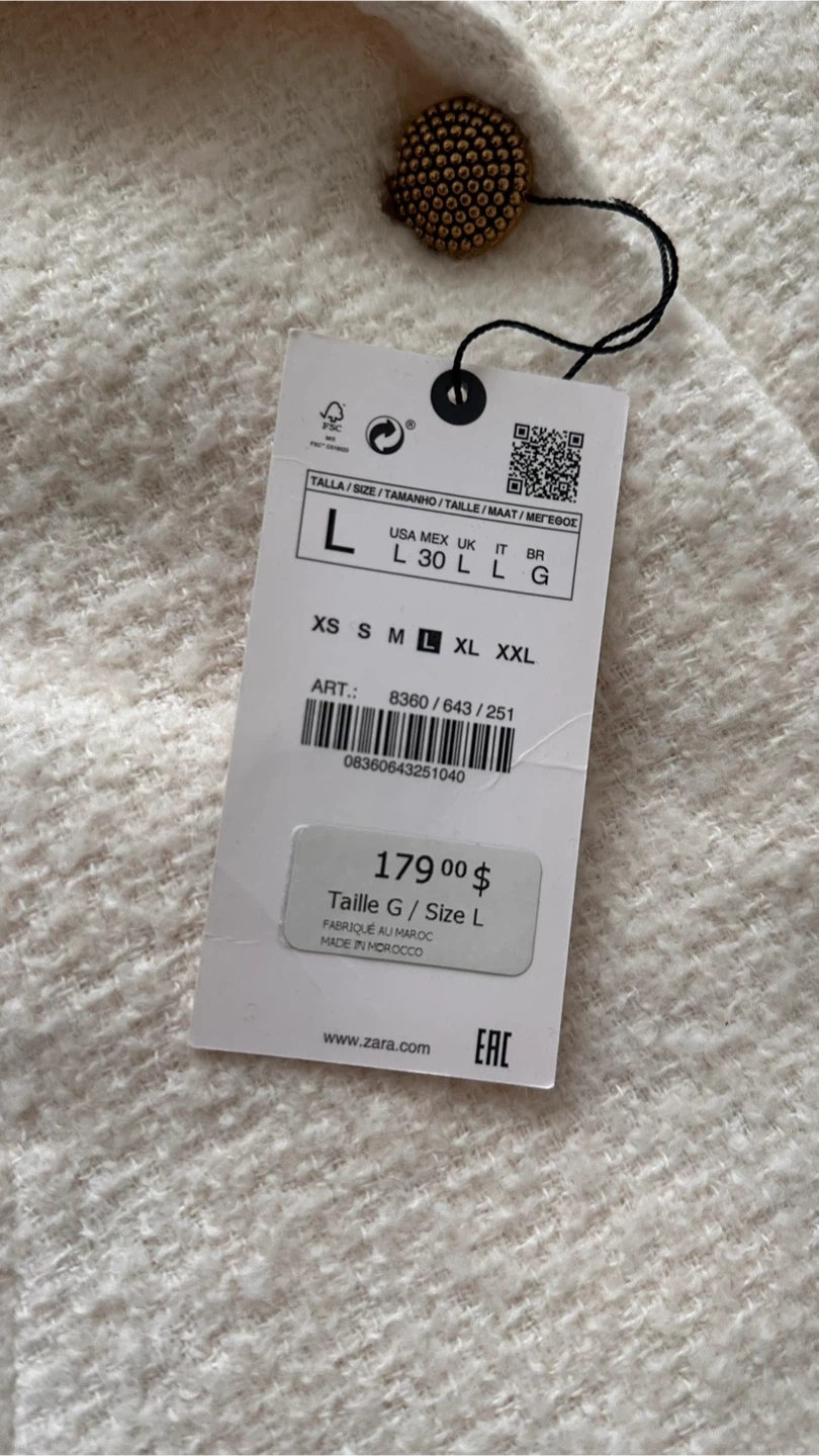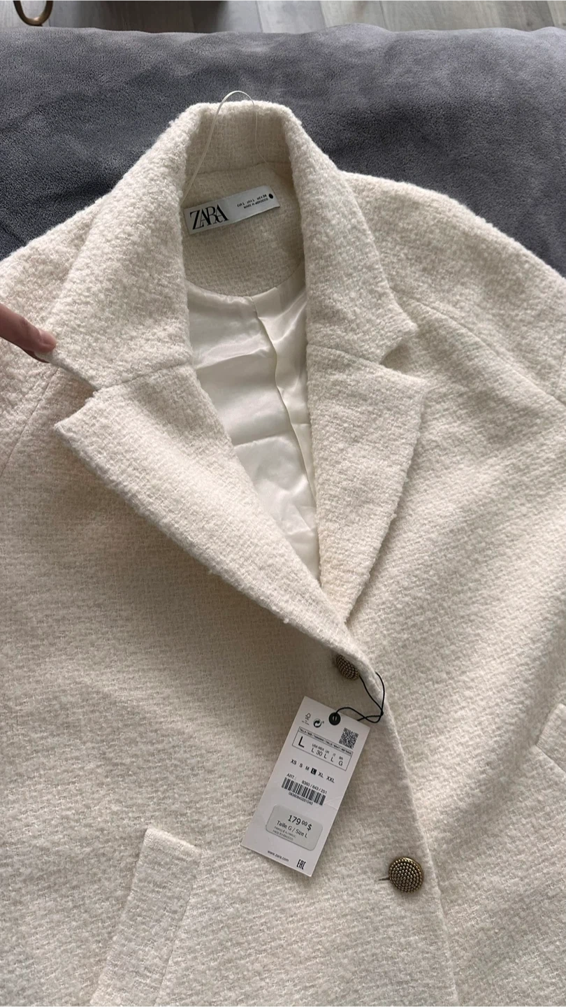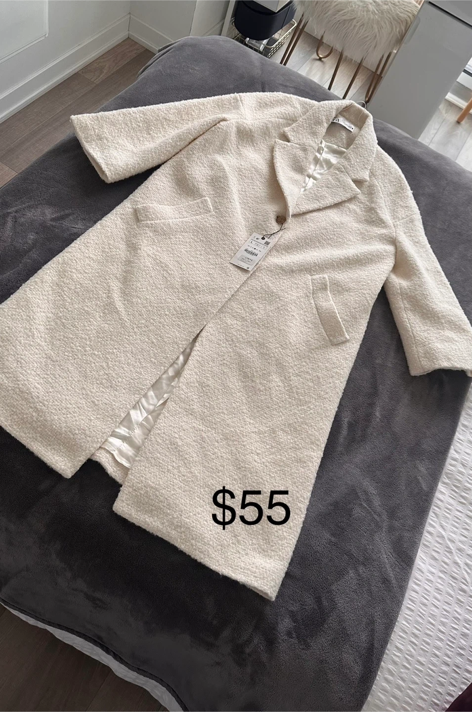 Selling a beautiful Zara boucle coat in size L! It's a lovely cream colour and features a wool blend material. The tag shows it originally retailed for $179.00. Asking $55!