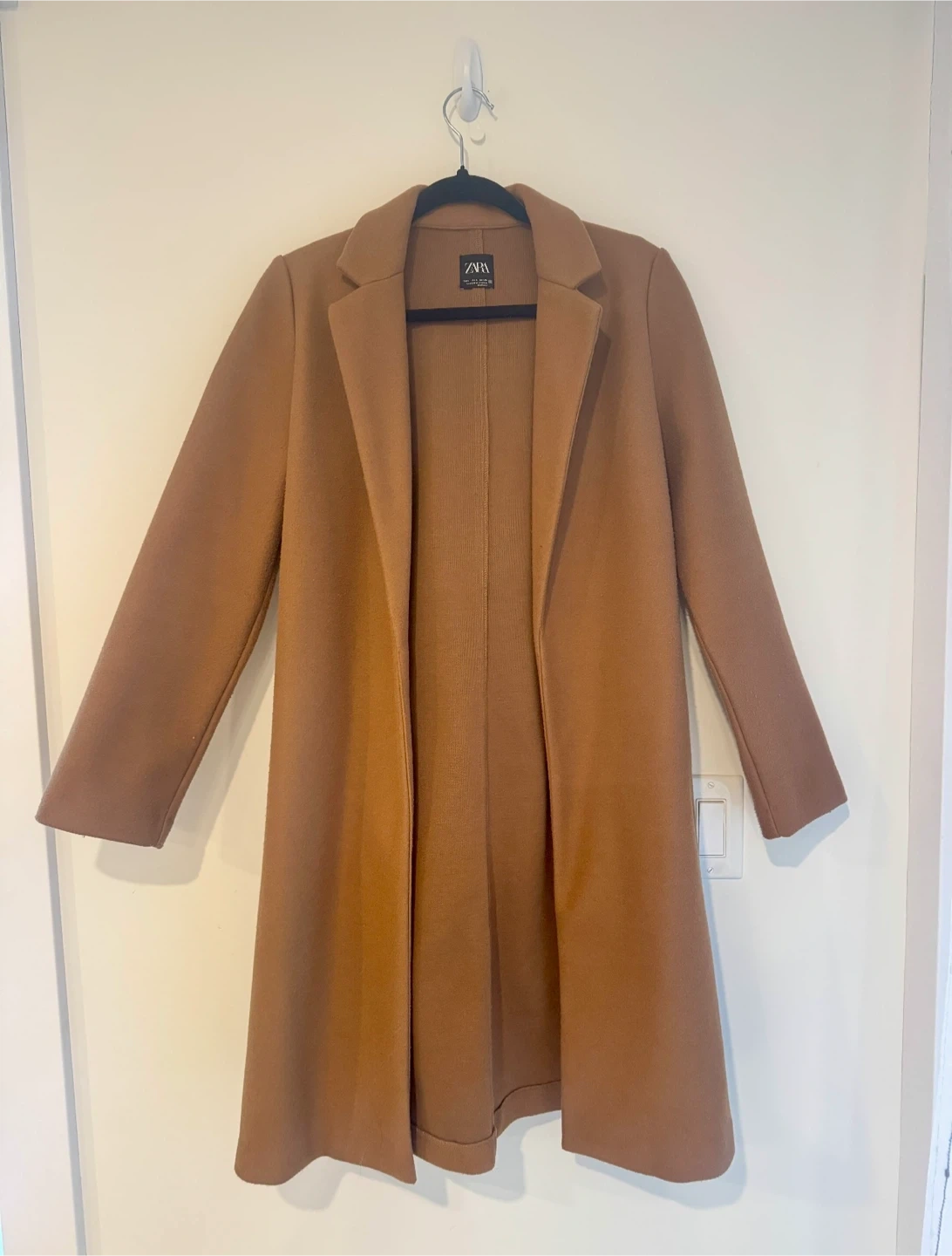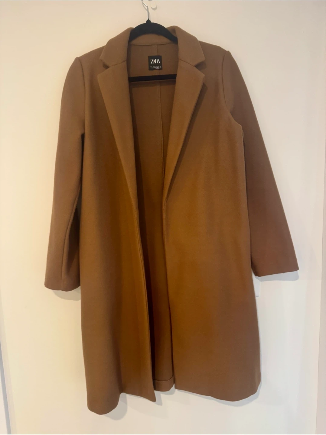 34Selling a stylish brown coat from Zara! It's in good condition and perfect for layering during the colder months. The material is soft and comfortable, making it a cozy addition to any wardrobe. It's a versatile piece that can be dressed up or down, so don't miss out!