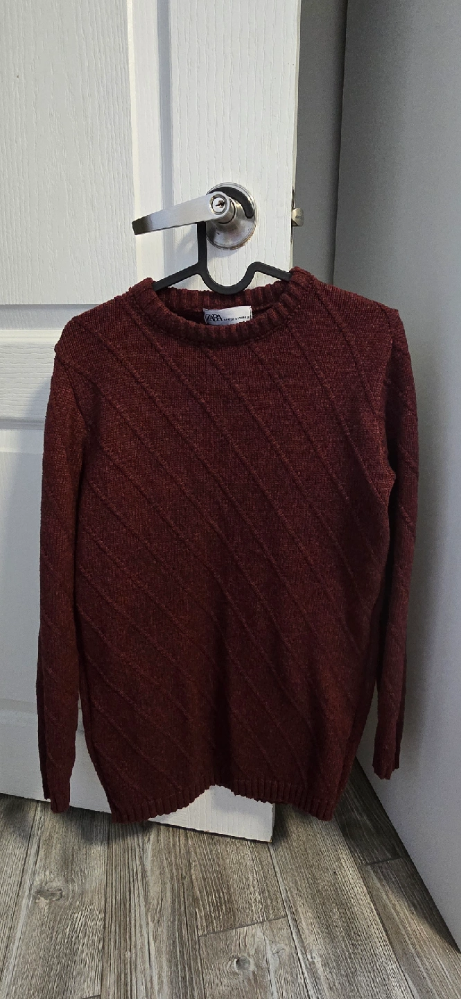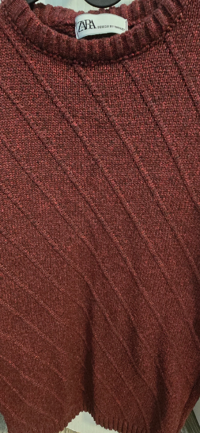70Cozy Zara knit sweater in a lovely burgundy colour! It features a unique diagonal pattern and is designed in Turkey. Perfect for staying warm and stylish this season