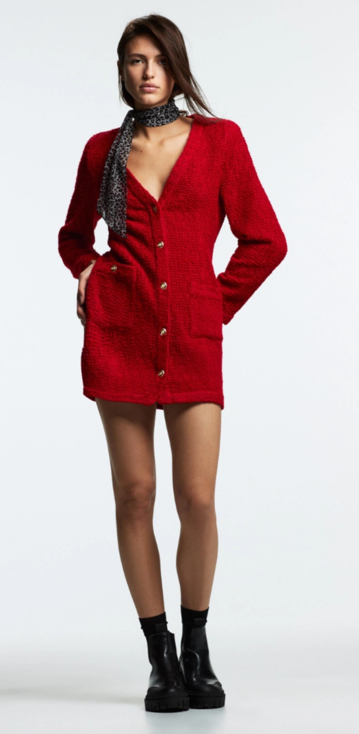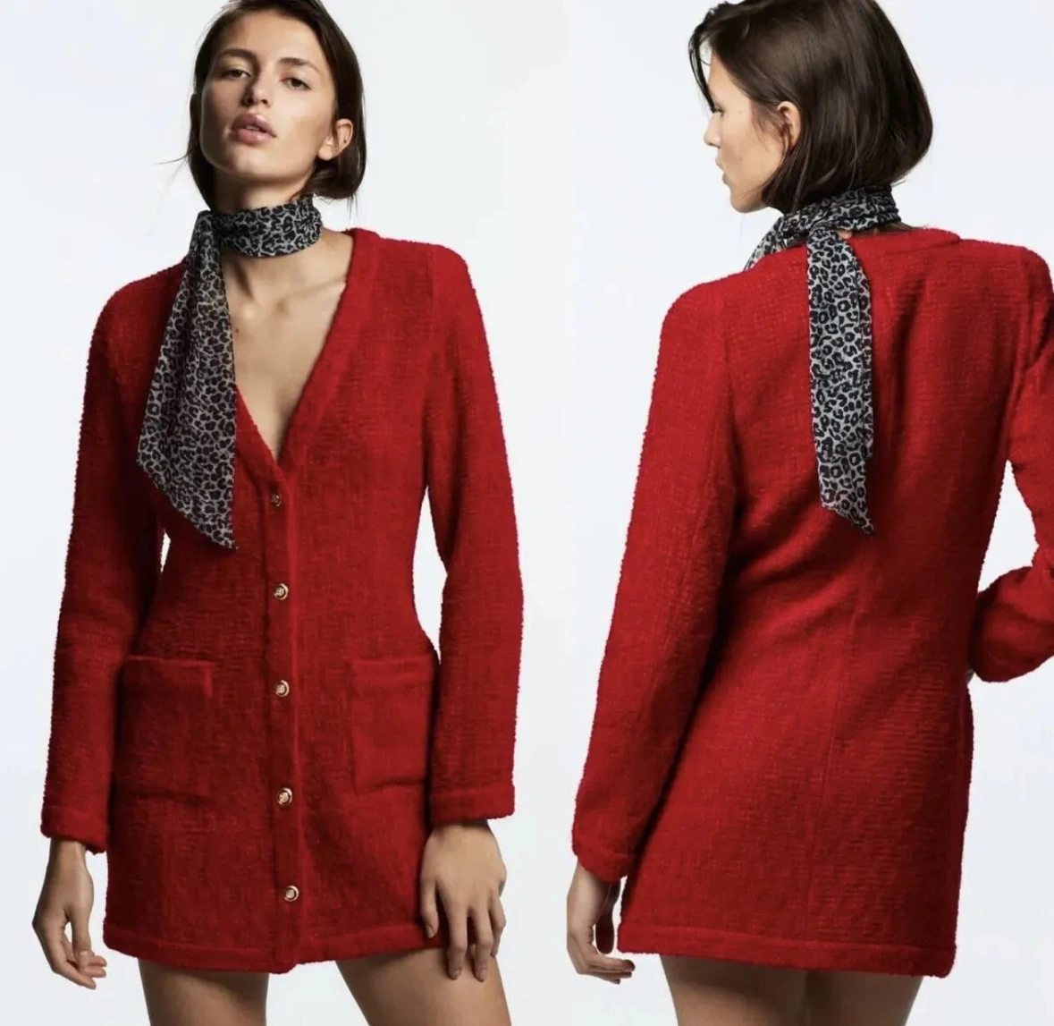 63Worn twice in good condition. Textured weave/tweed like fabric with gold buttons