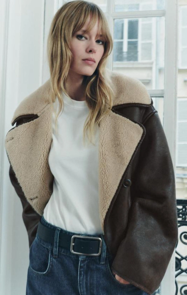 15Trendy Zara faux shearling aviator jacket in brown and cream. Features a soft sherpa lining, oversized collar, and faux leather exterior. Super cozy and stylish — perfect for fall and winter. Worn only a couple of times and in great condition. Easy to dress up or down! Pickup: Downtown Toronto / UofT area