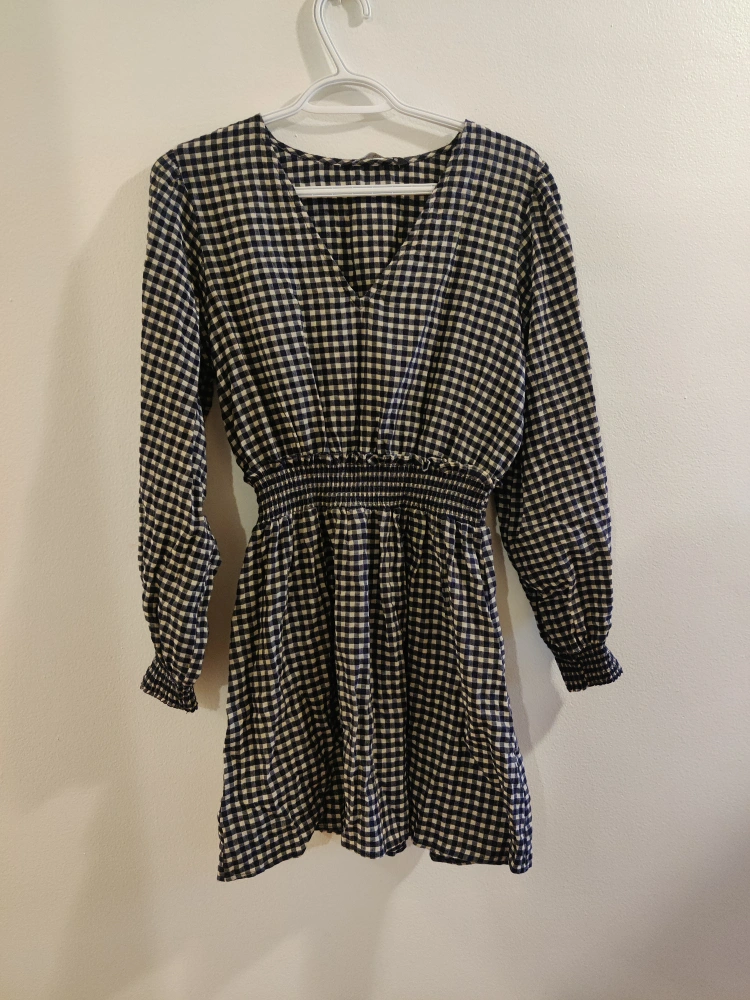 Selling a cute Zara mini dress with a gingham pattern! It's a size small and in great condition.Only worn once . Perfect for a casual day out. Has a cinched elastic waist and long sleeves.