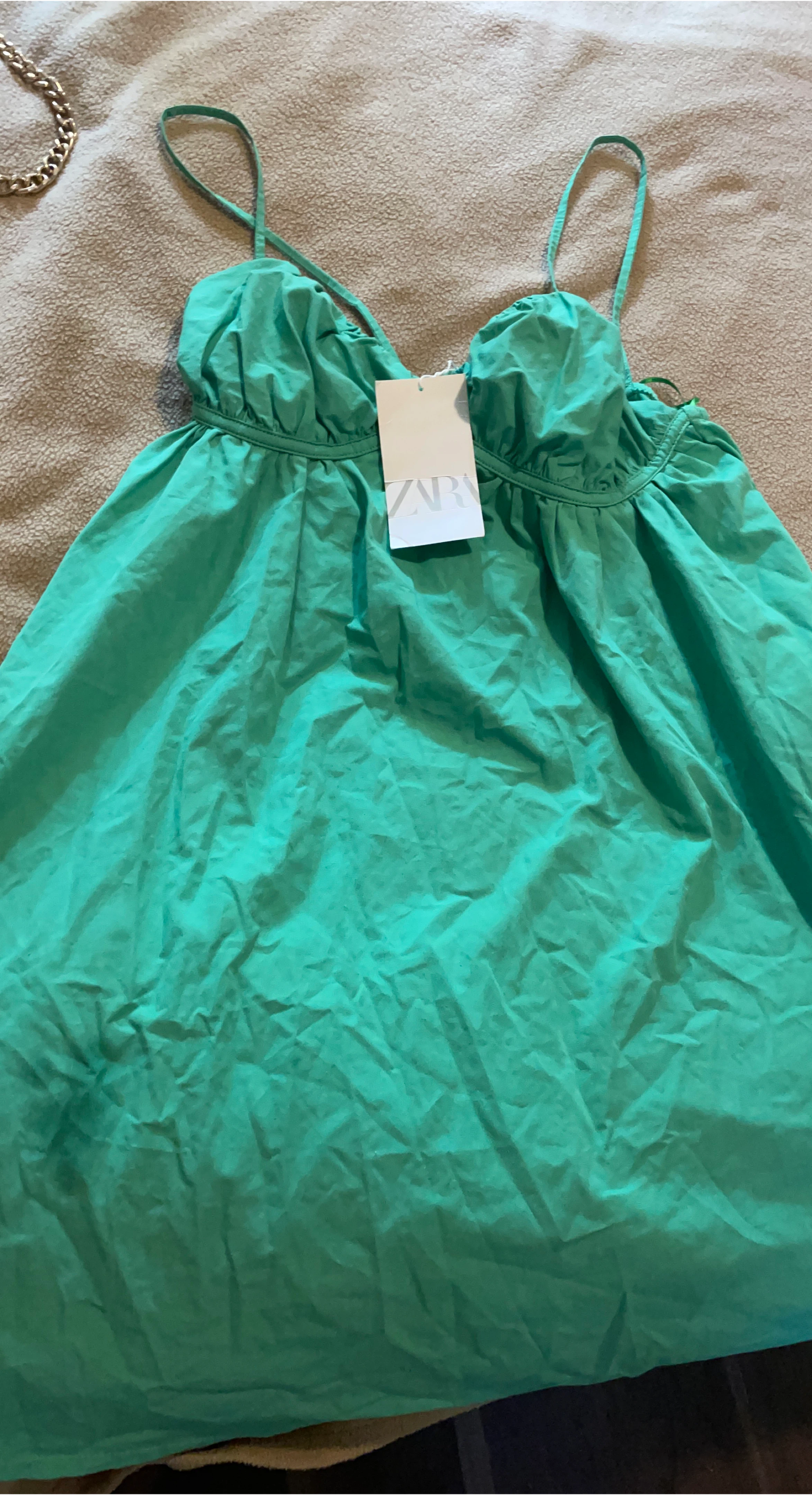 Here's a cute green dress from Zara! It's perfect for a summer day out or a casual evening. It's in great condition and ready for a new home