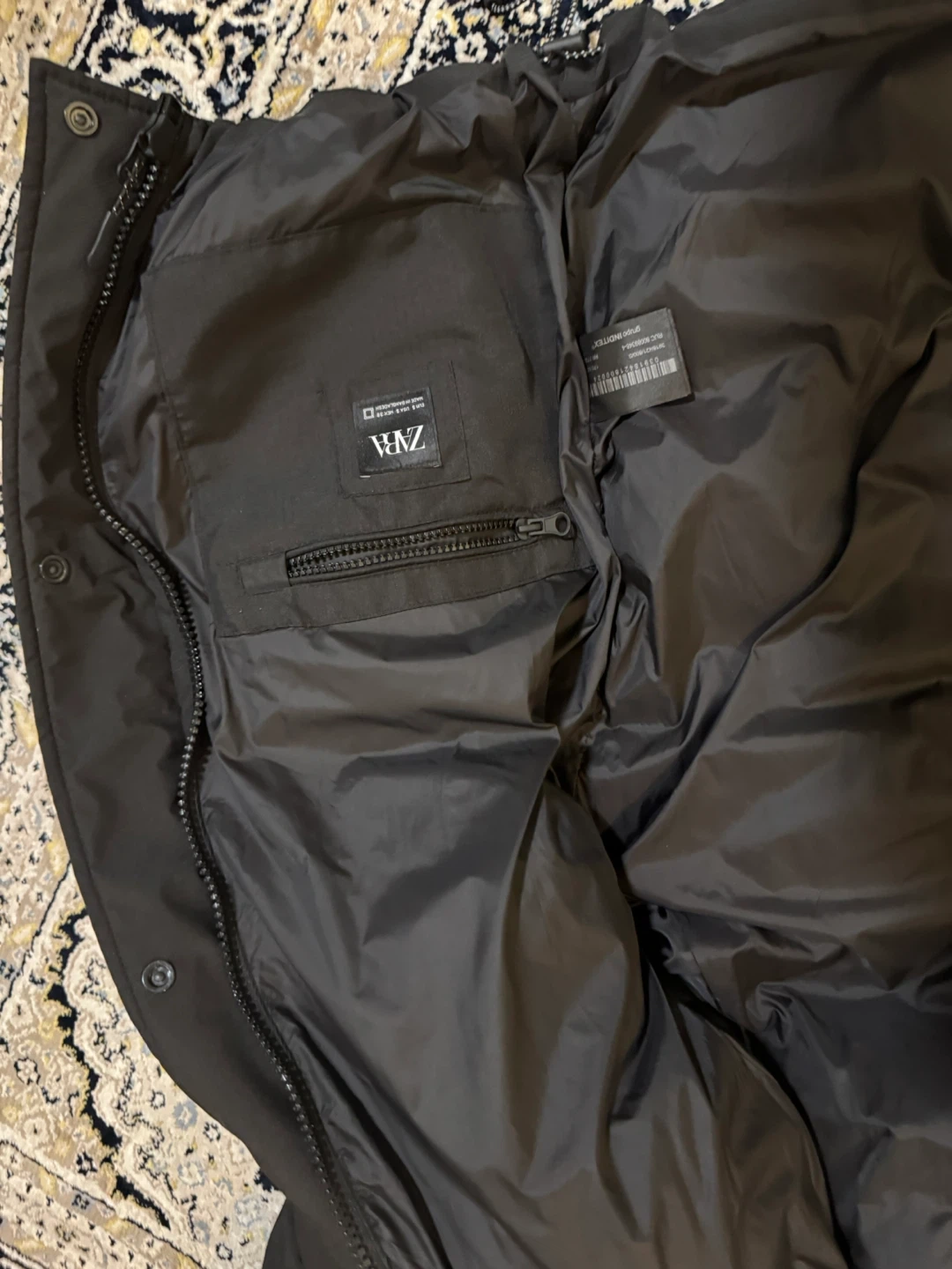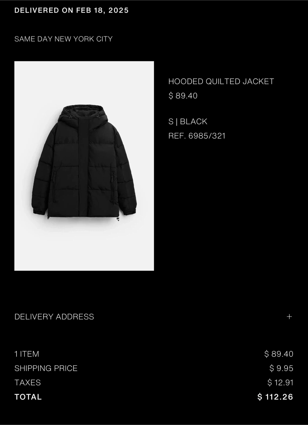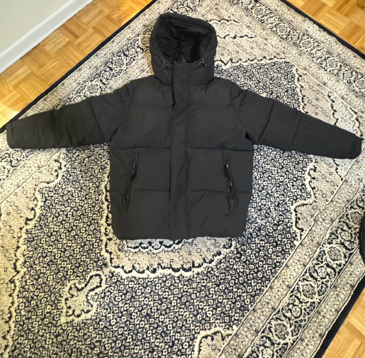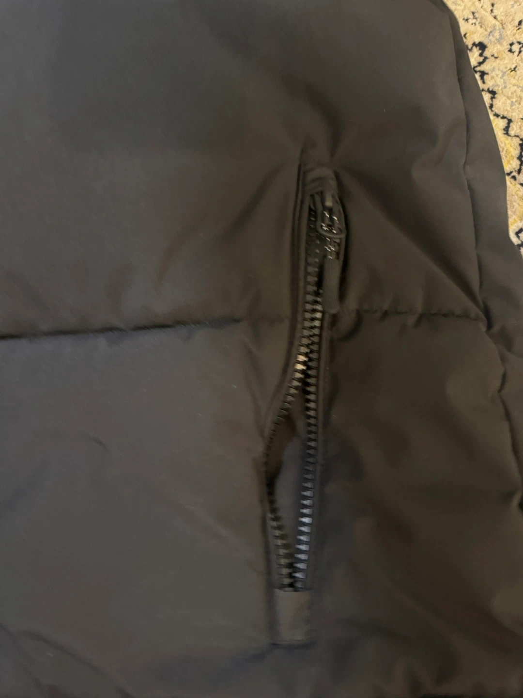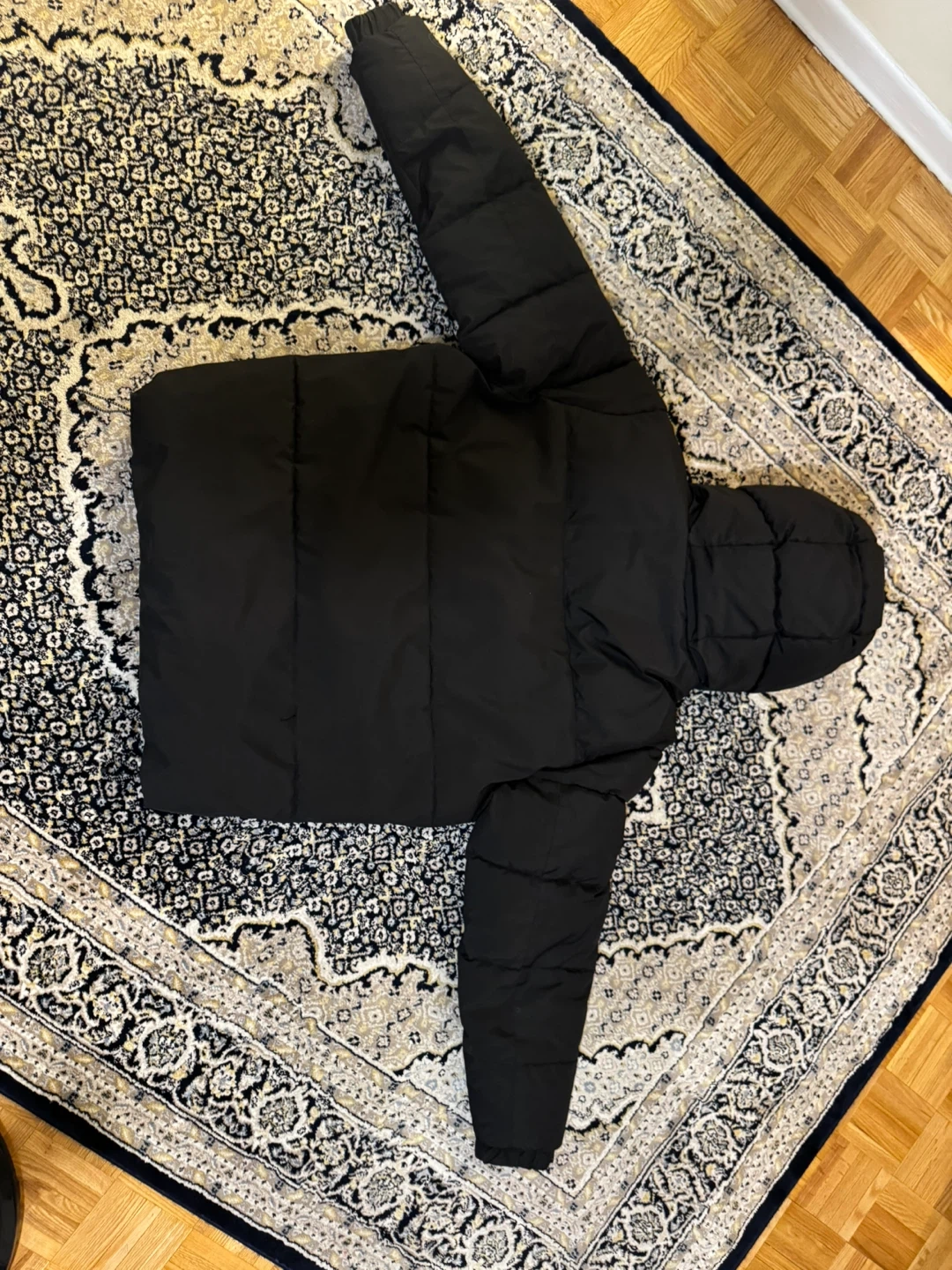 14Selling a Zara hooded quilted jacket in black, size small. It's in great condition. The jacket features a quilted design and a hood for extra warmth.