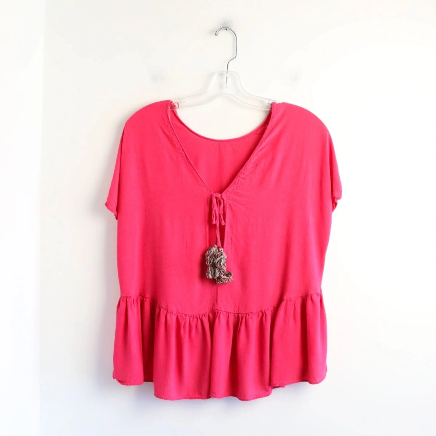 •Like New No Flaws •Pemplum Style •Oversized •Tassle Details on Back •Lower V Shaped Cut on