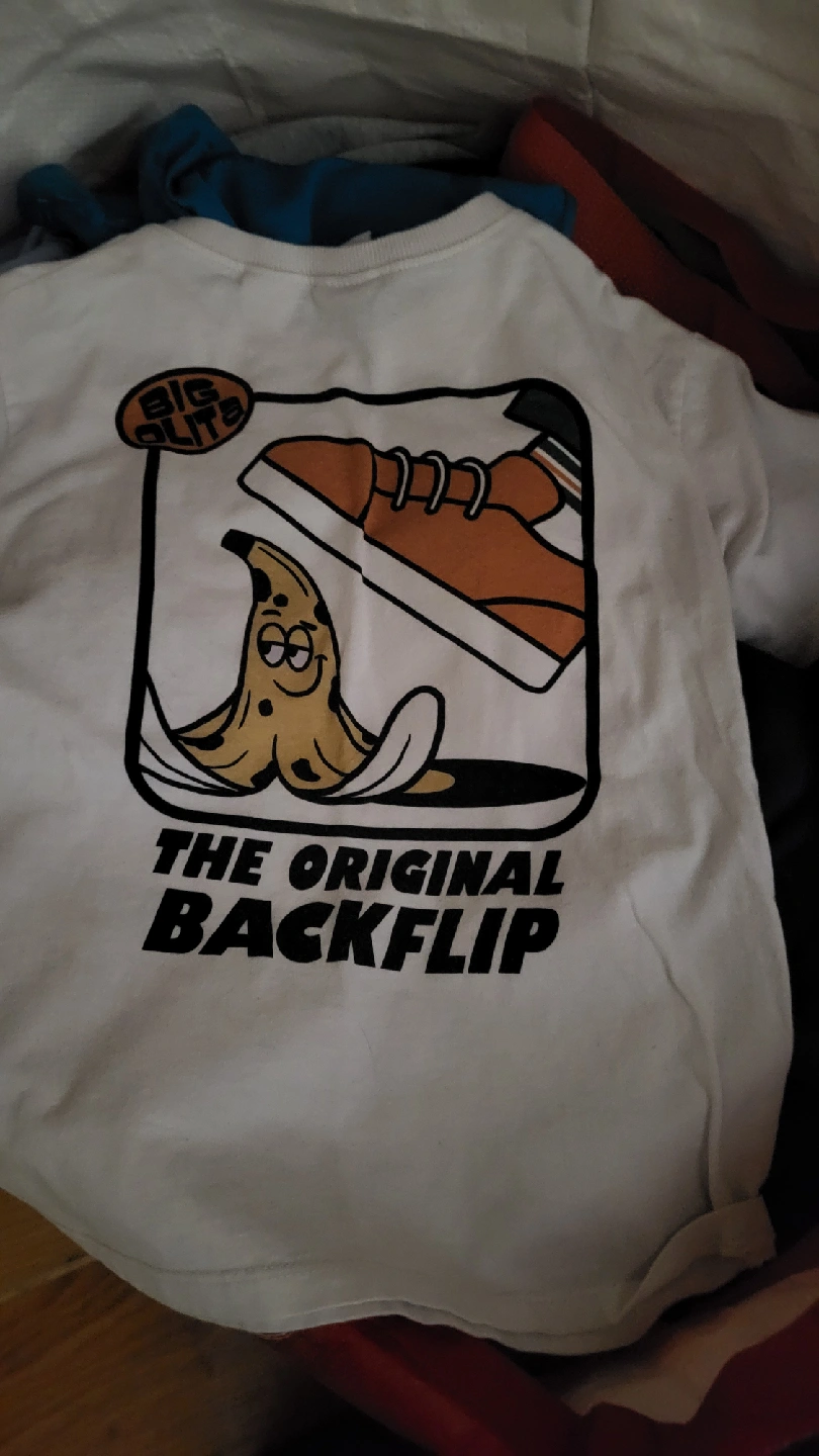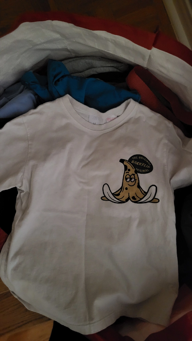 Selling a cute Zara kids t-shirt! It's white with a fun graphic of a banana doing a backflip. Size is 4-5 years (110).