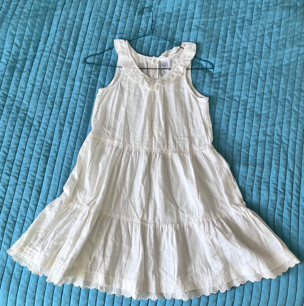 $5 for a kids’ white sleeveless dress with a lace trim. The dress has a button up front. It is for height 152cm/4’11”. Made in Morocco. Please contact if interested, thank you! Cash only