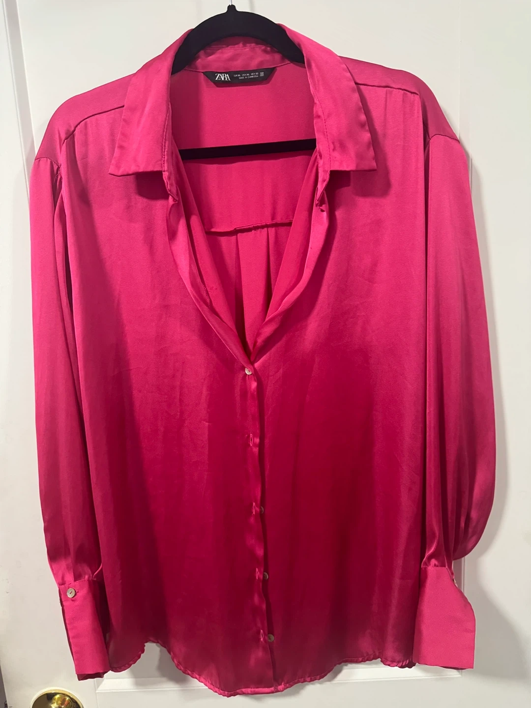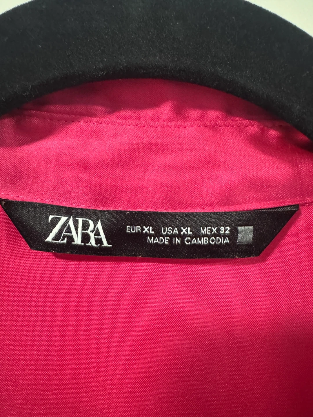 Selling a Zara button-up shirt in a vibrant pink colour! It's a size XL and made in Cambodia. Perfect for adding a pop of colour to your wardrobe!