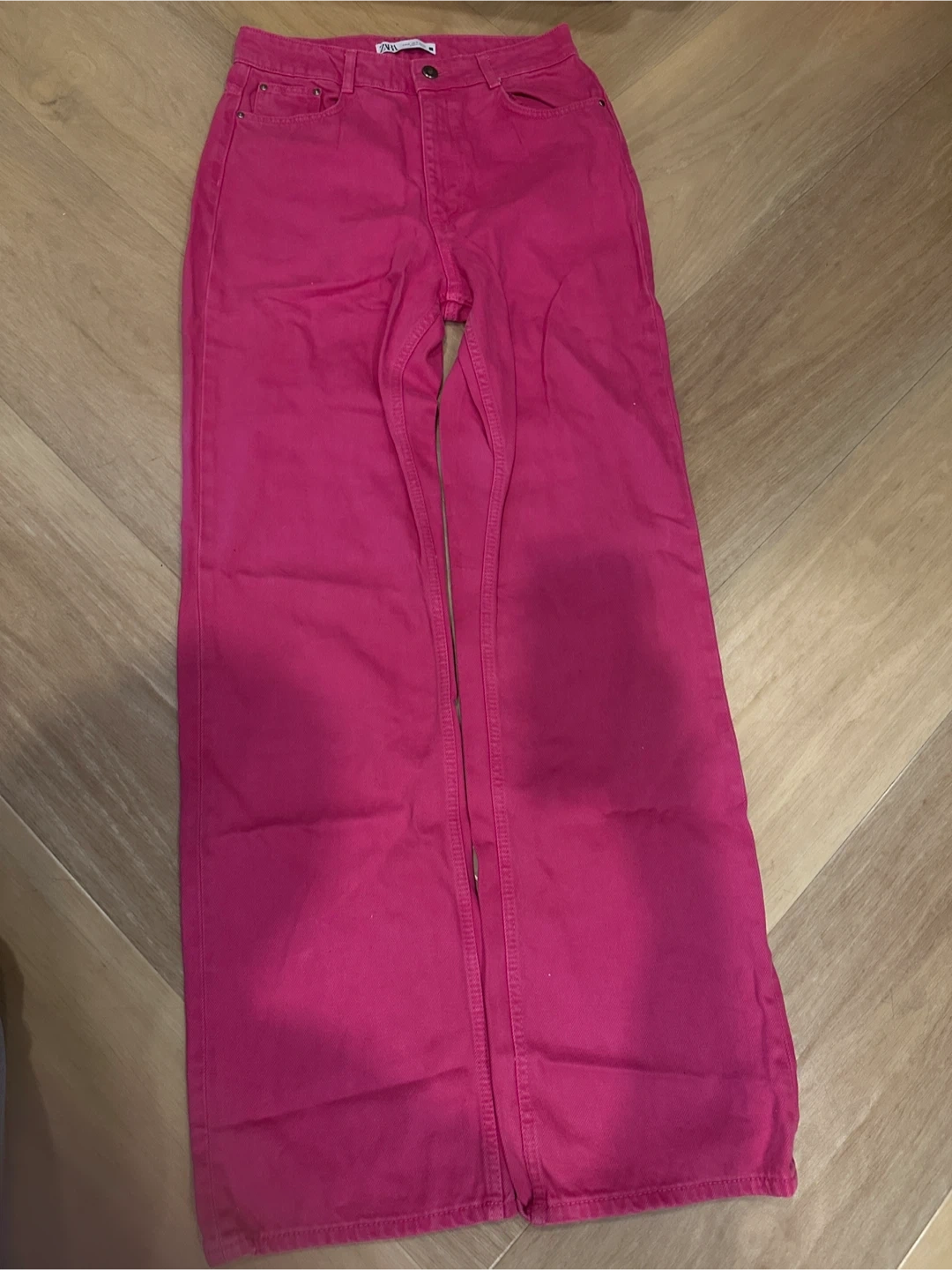 10These are a pair of vibrant pink wide leg jeans from Zara! They are a size 8 (USA). These jeans are new without tags.