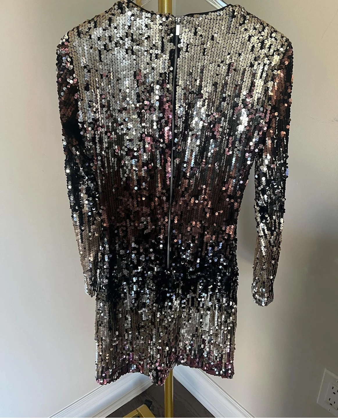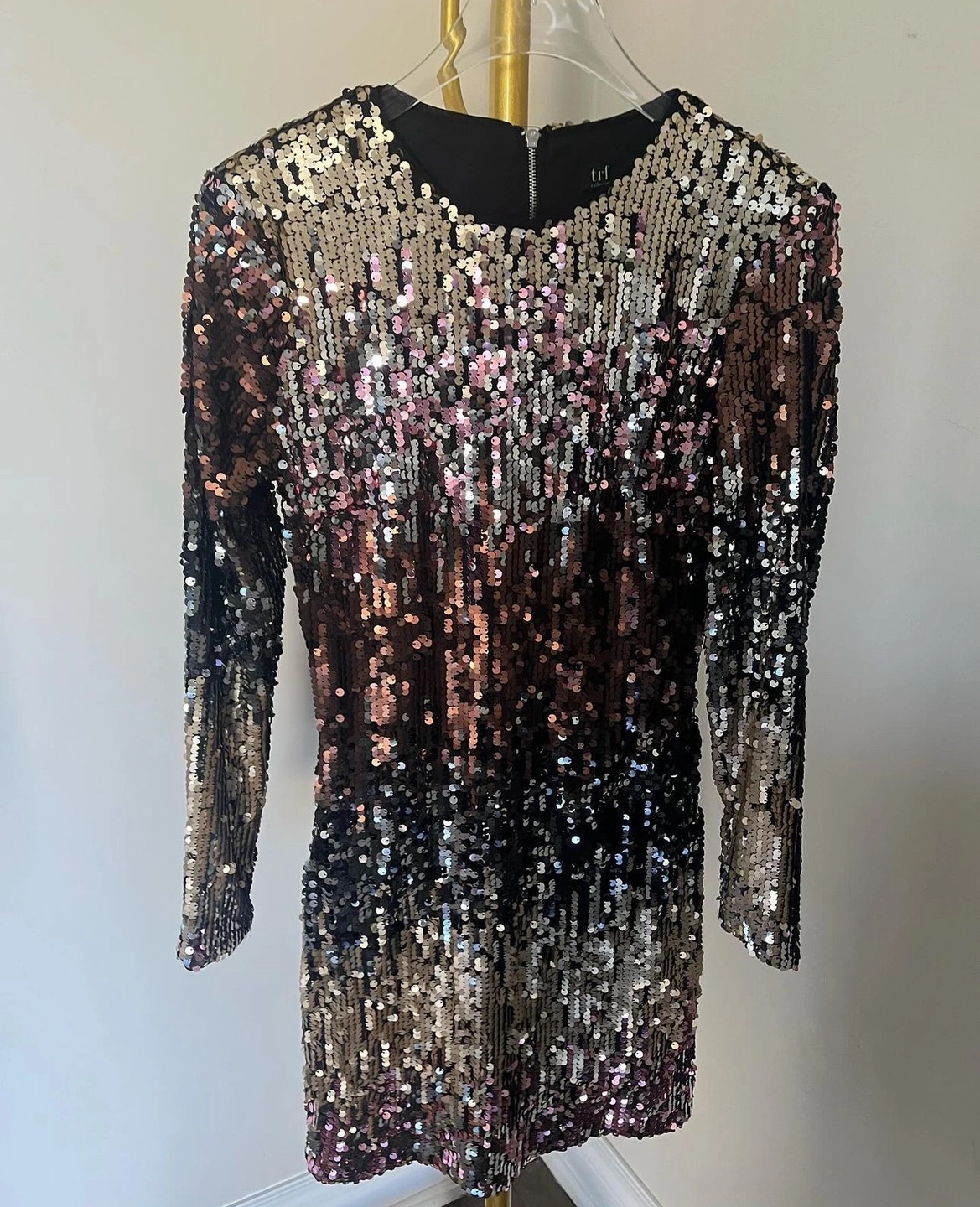 64This is a multi-coloured sequin mini dress with long sleeves and a back zipper. Like new asking $20 all sales final pick up in Vaughan