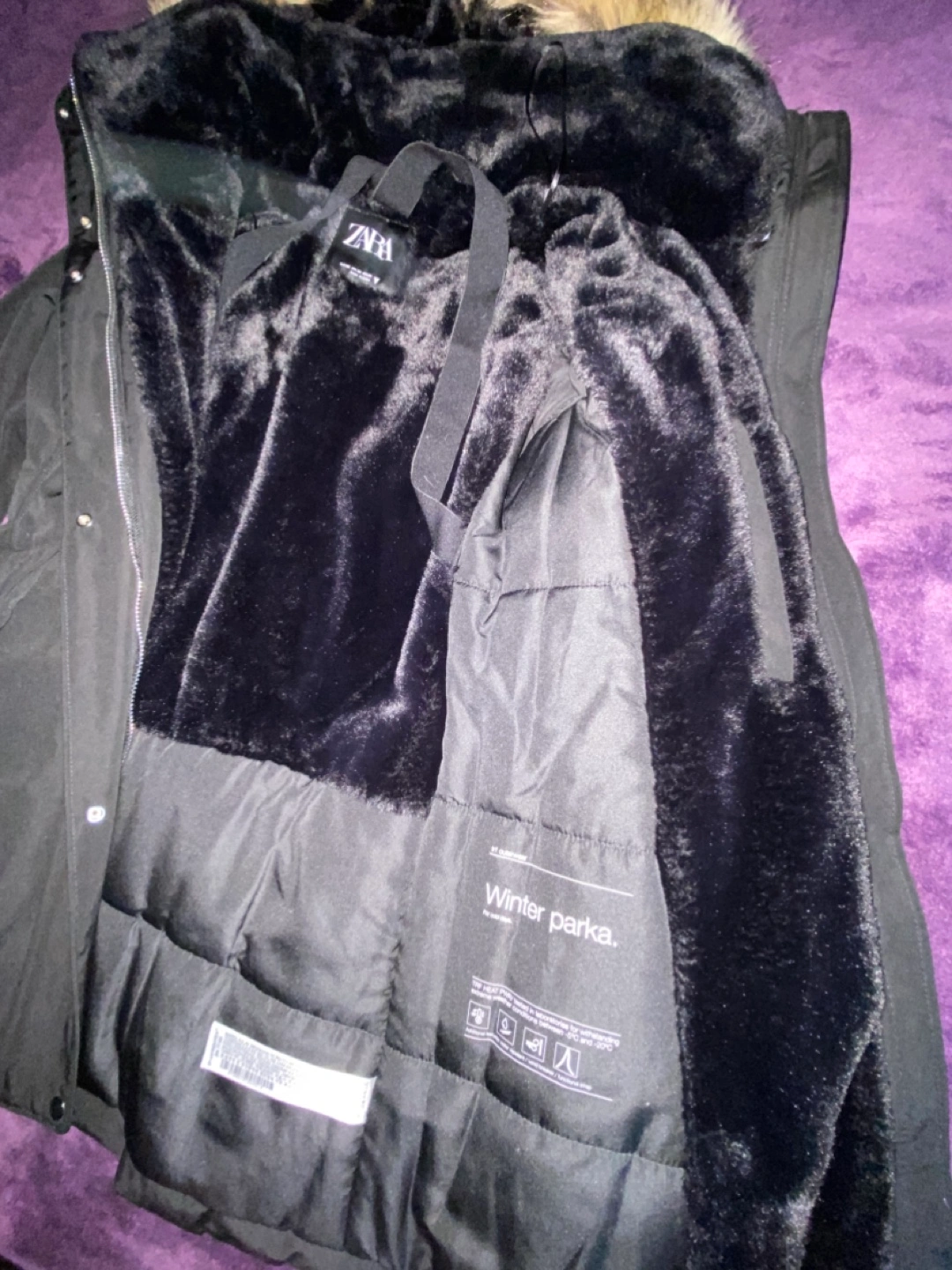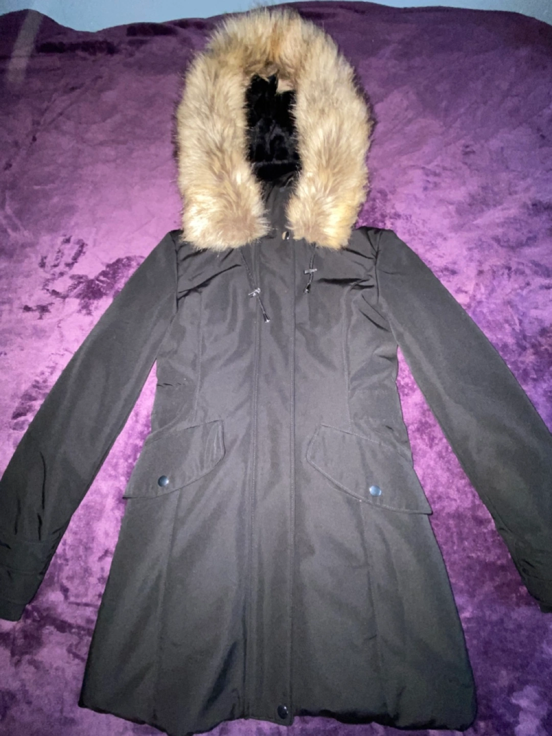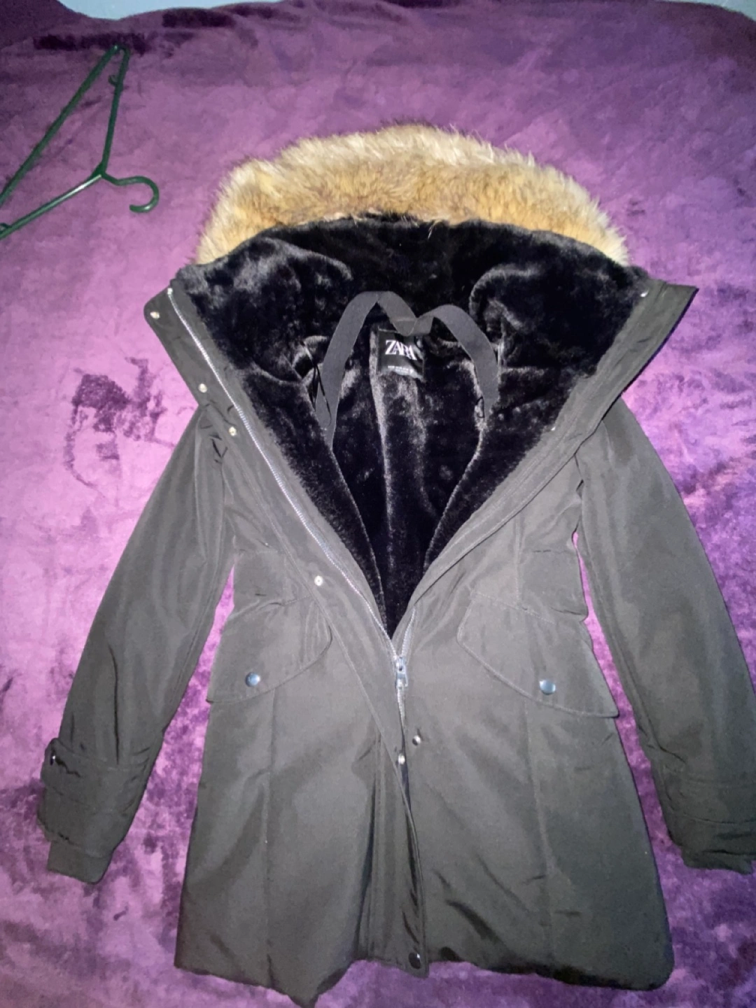 Selling a Zara Winter Parka in size XS! It's a stylish and warm coat, perfect for the Canadian winter. The parka features a fur-trimmed hood and a cozy, plush lining to keep you snug and comfortable.
