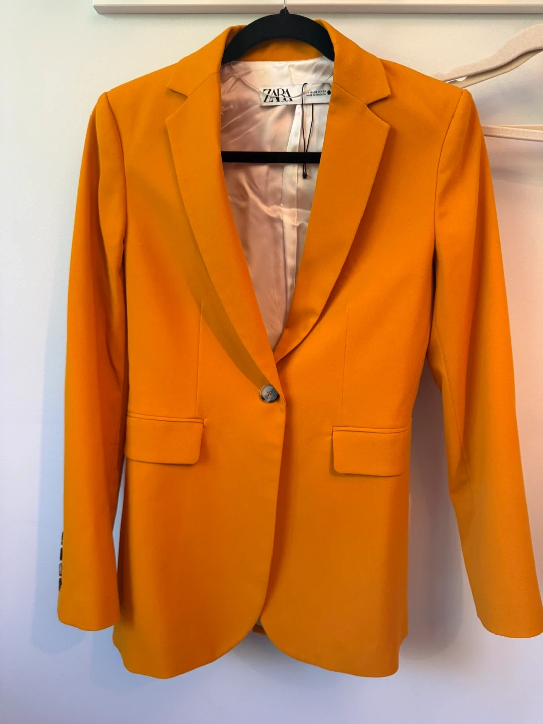 Selling a vibrant orange Zara blazer in excellent condition! size XS, mint condition. No longer in corporate work, need to sell. Perfect for adding a pop of colour to your outfit!