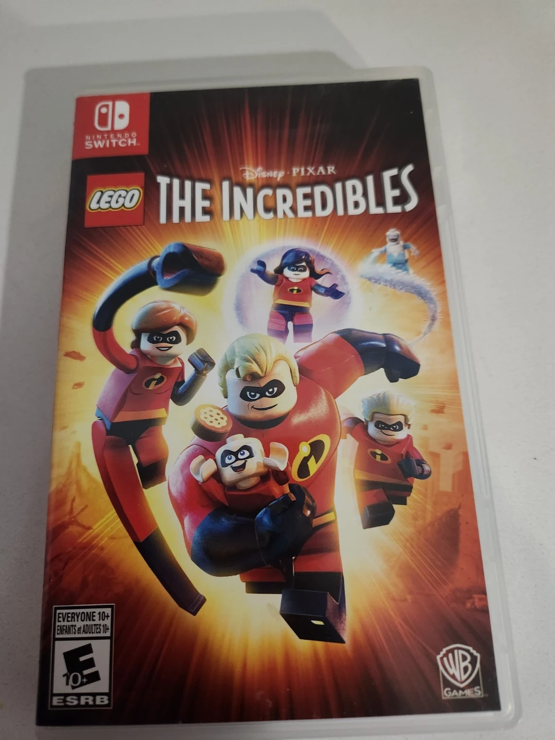 This is the LEGO The Incredibles video game for the Nintendo Switch. It's rated E10+ for Everyone 10 and up. Includes the game cartridge and case.