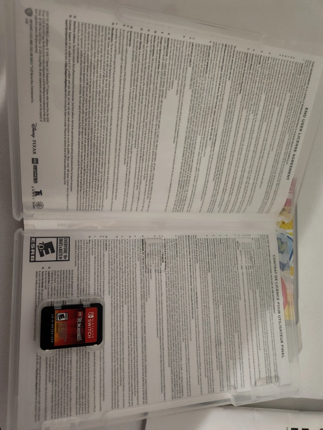 This is the LEGO The Incredibles video game for the Nintendo Switch. It's rated E10+ for Everyone 10 and up. Includes the game cartridge and case.