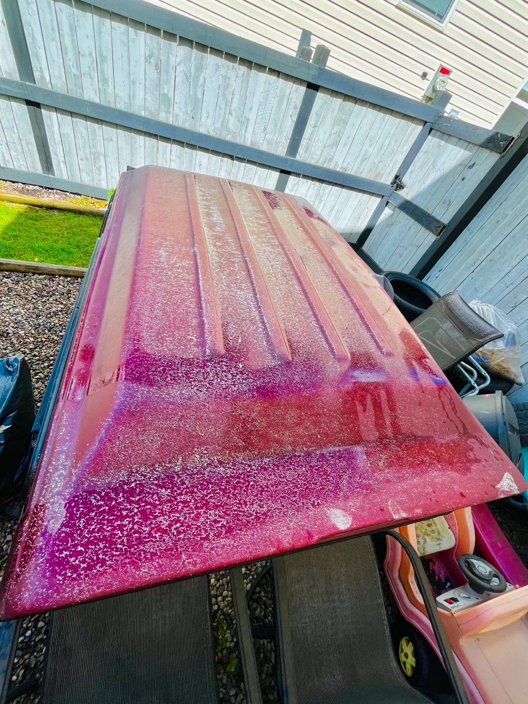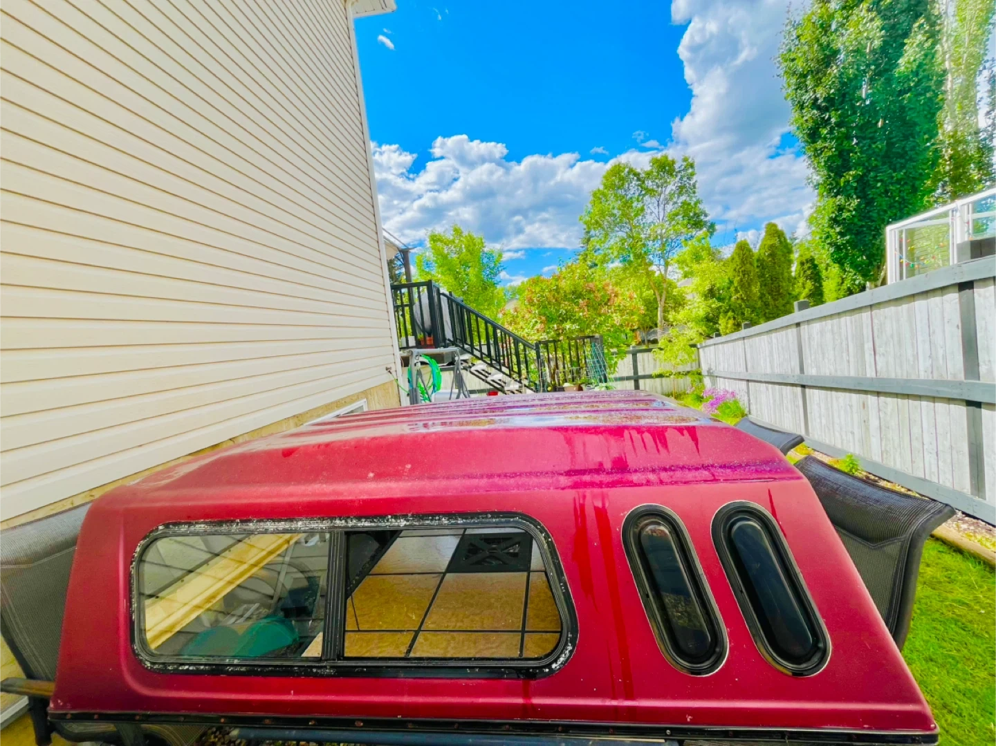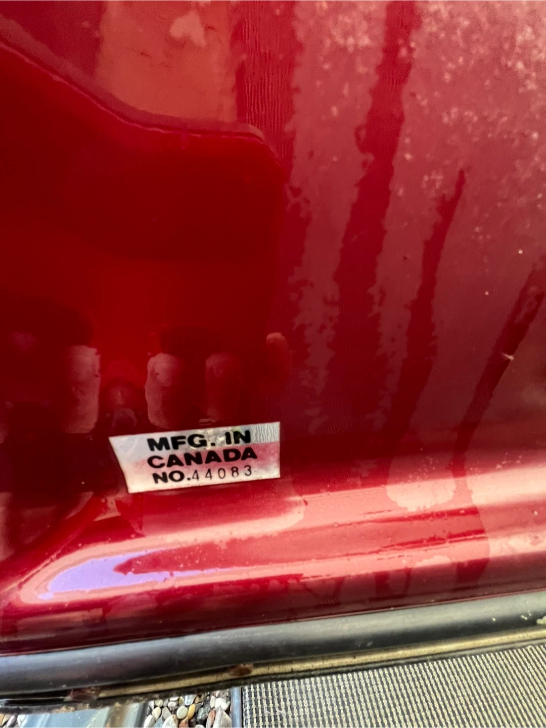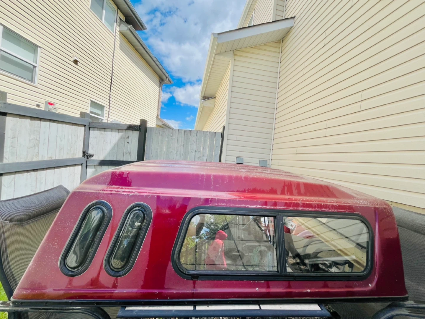 This is a red truck cap with side and rear windows. It's manufactured in Canada. It's ready to go on your truck!