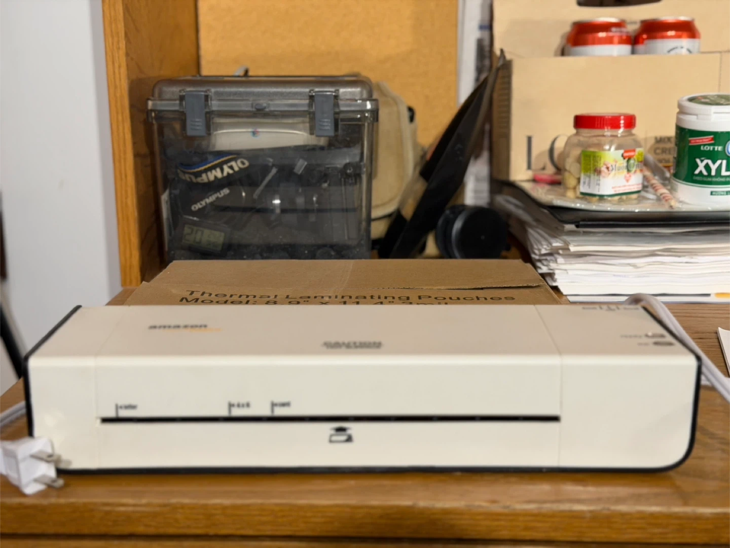 Selling an Amazon Basics thermal laminator! It's in great condition and ready to help you preserve your important documents and photos. It can handle letter size, 4x6 and card sizes. Also included is a box of thermal laminating pouches, 8.9" x 11.4" 3mil, with more than 150 pouches