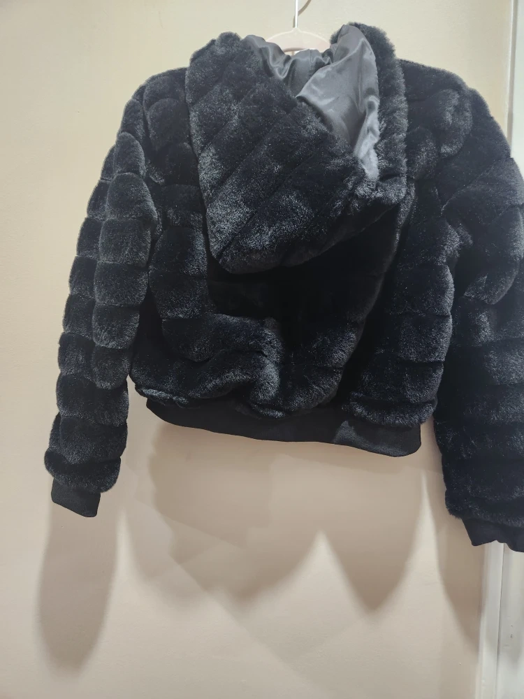Shein Black Faux Fur Hooded Jacket - Size 9Y