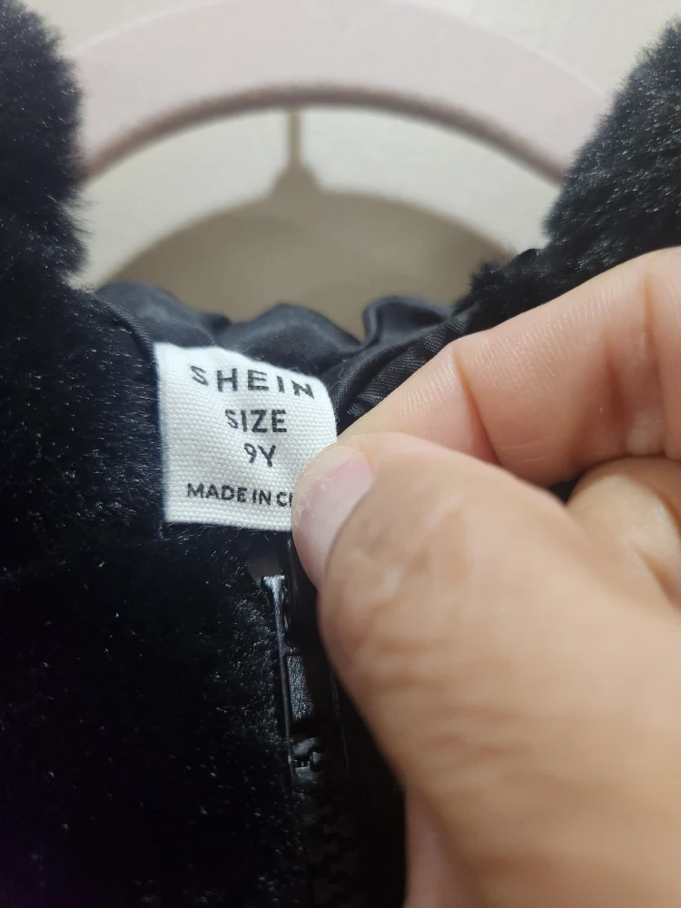 Selling a cozy black faux fur hooded jacket from Shein in size 9Y. It's perfect for keeping your little one warm and stylish!