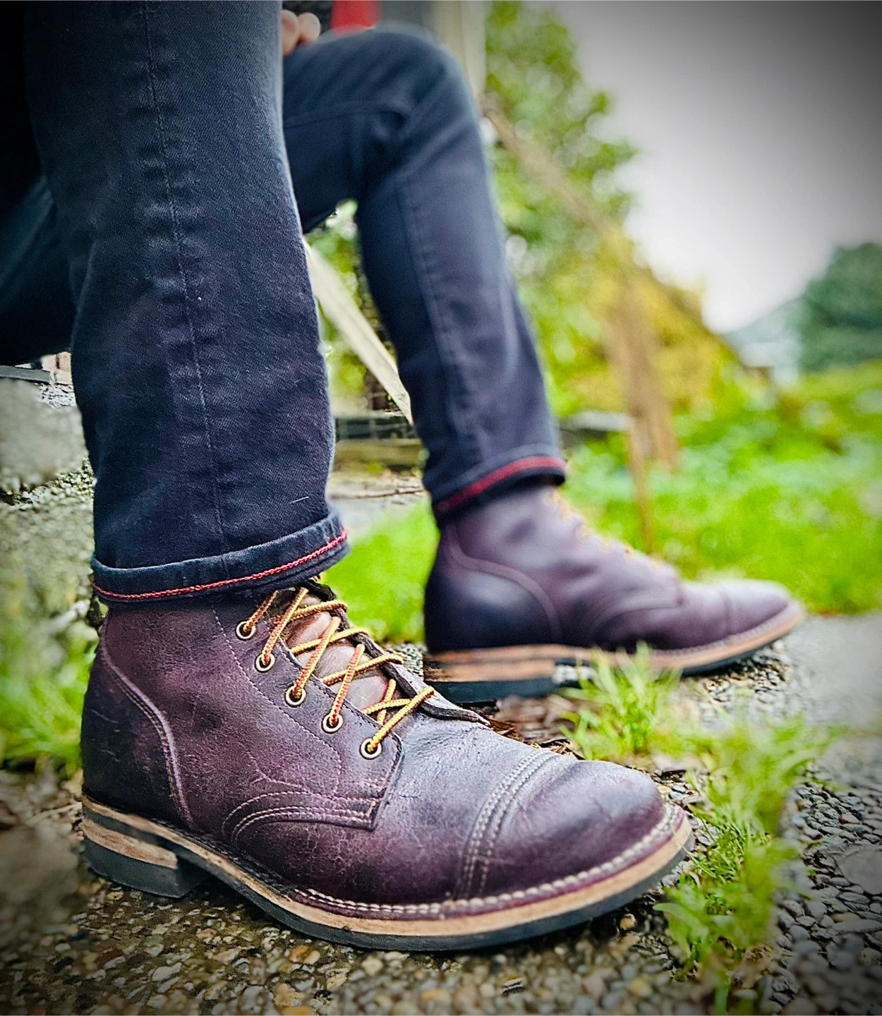 Selling a pair of Black Burgundycap toe boots men's boots in size 9 They are in great condition and have a stylish, classic look. Perfect for everyday wear or dressing up. These boots are known for their quality craftsmanship and durability, so they'll last you a long time!