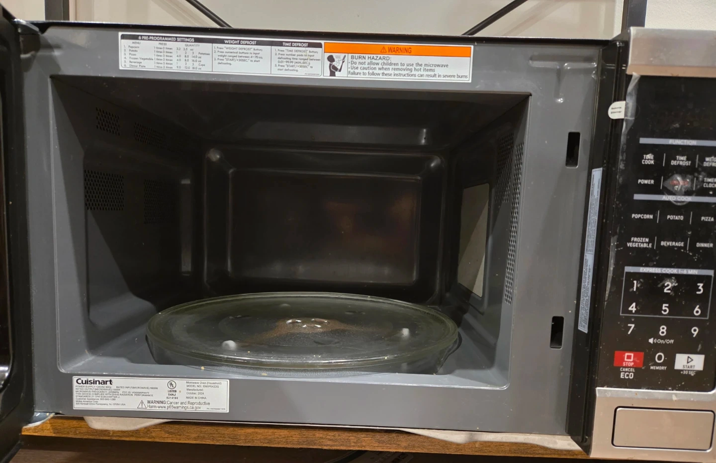 This Cuisinart microwave oven has a stainless steel exterior and multiple cooking presets. It includes a glass turntable and an interior light. It's a great addition for any kitchen!