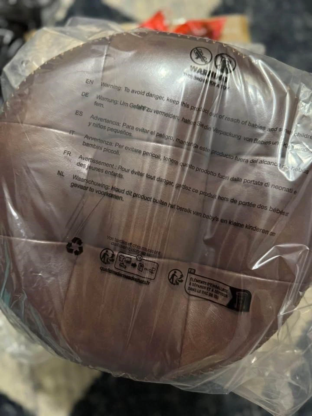 Brown Faux Leather Round Ottoman Stool