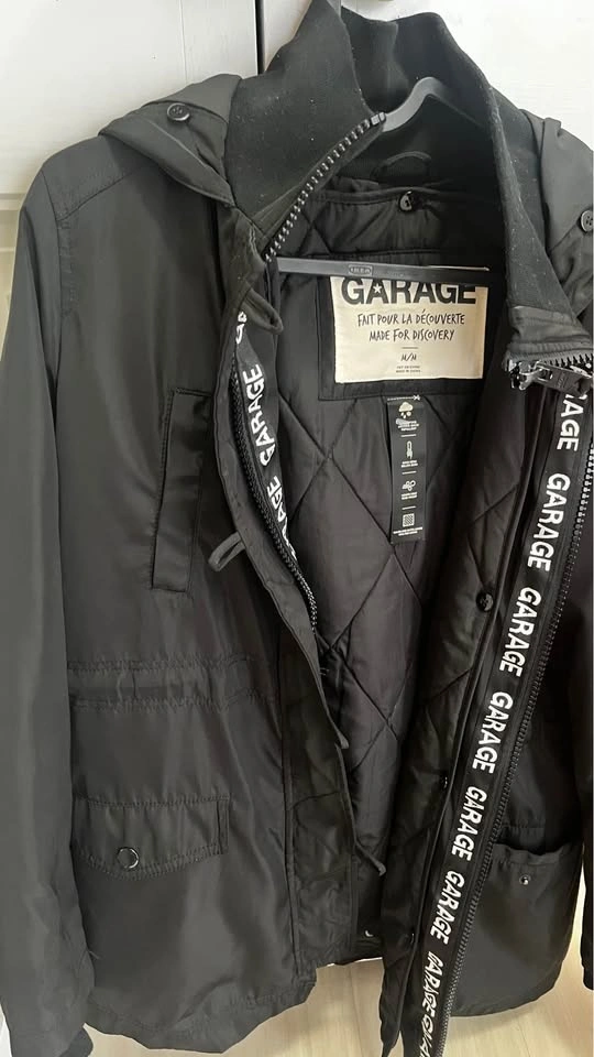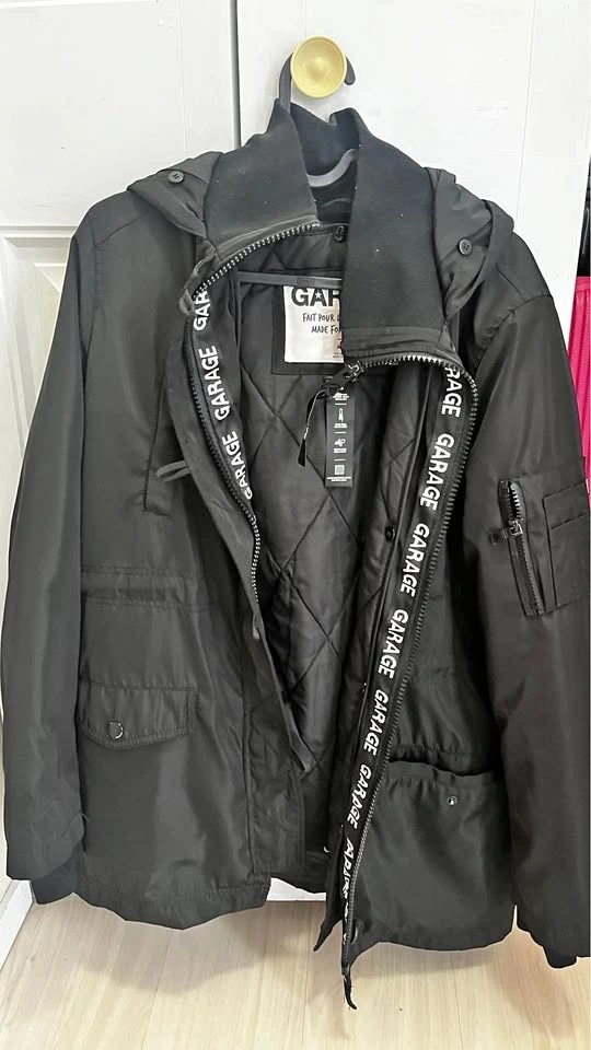 Like new Garage rain jacket, worn only 2–3 times. Waterproof, lightweight, with hood and stylish branded straps. Easy to wear and perfect for rainy days.