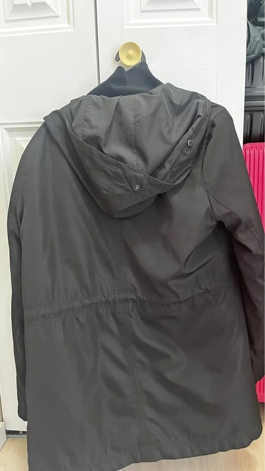Like new Garage rain jacket, worn only 2–3 times. Waterproof, lightweight, with hood and stylish branded straps. Easy to wear and perfect for rainy days.