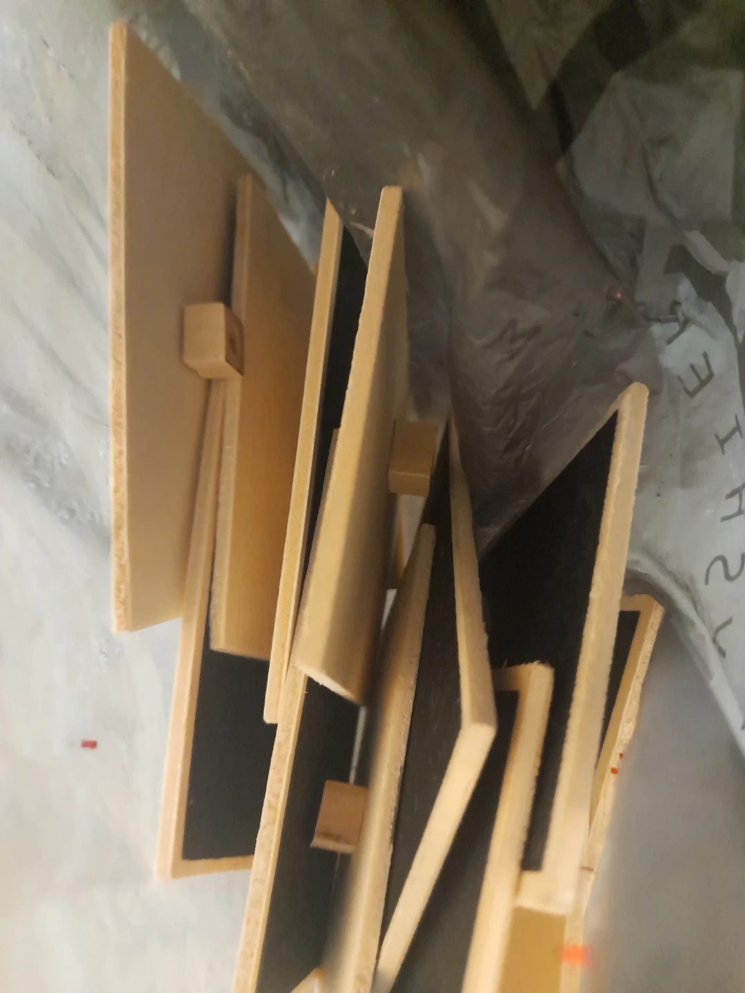 Includes six mini chalkboards made from wood. Each board has a black writing surface and a small wooden stand. These are great for labelling items or for small signs!