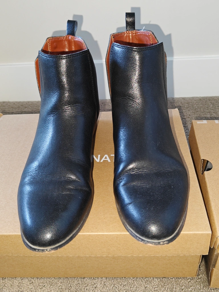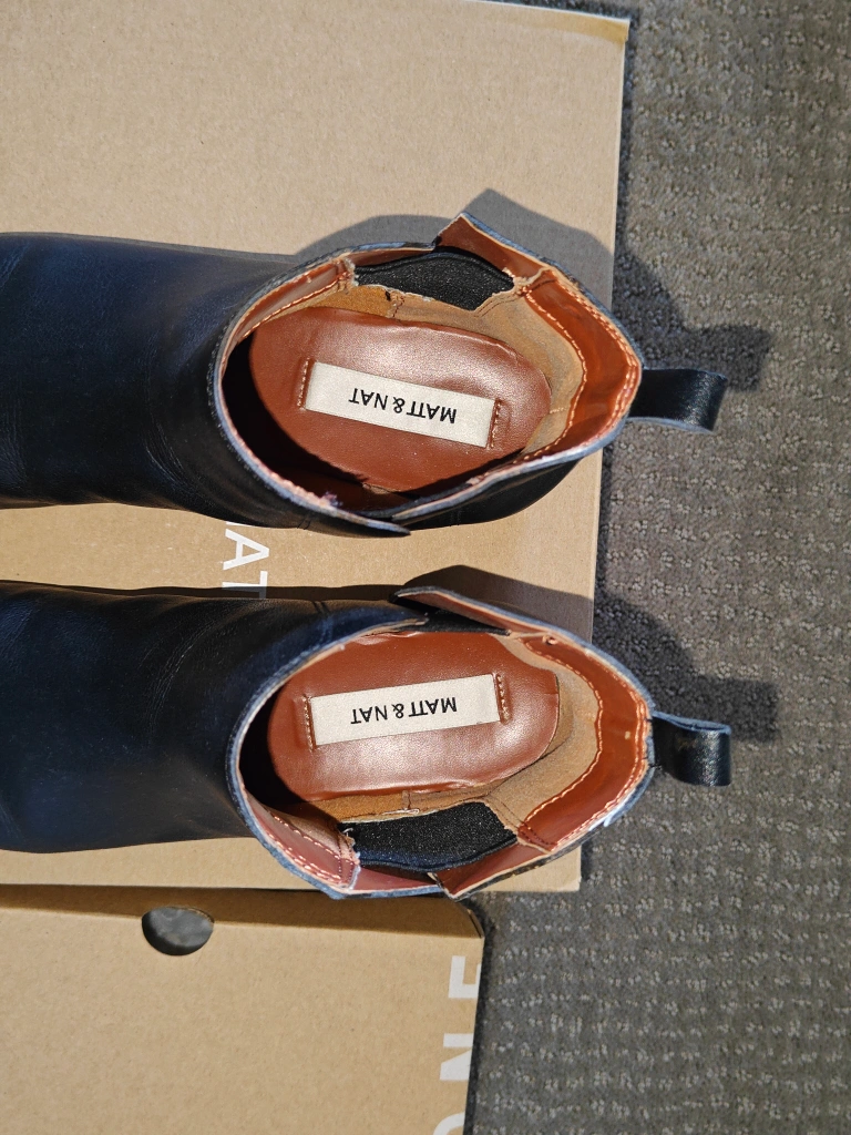 I am selling a Mat and Nat Newman Vegan Ankle Boots in used, great condition. Unlined ankle boot made in a smooth vegan leather. Also works for Cowgirl western Calgary Stampede wear.