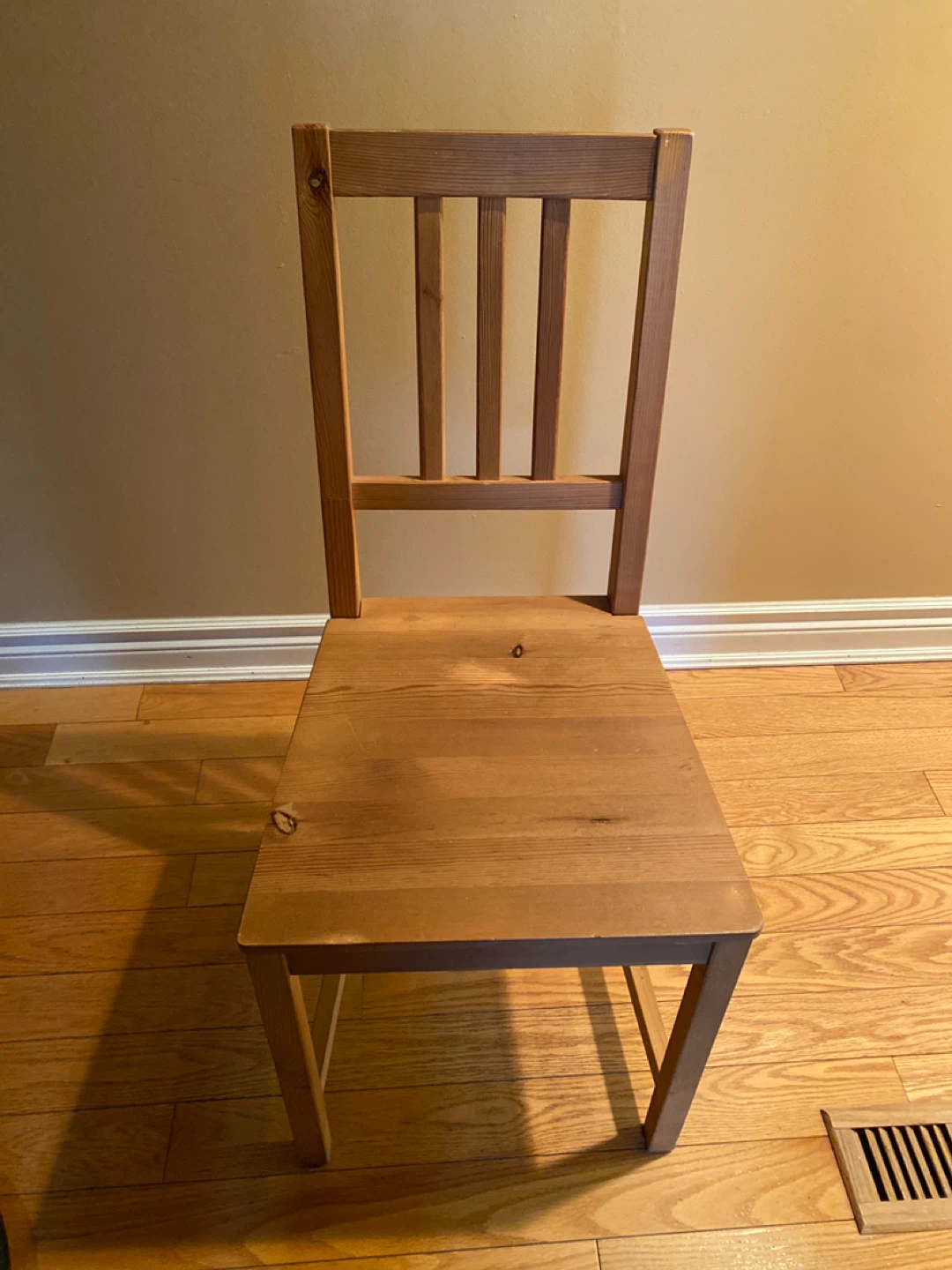 1 / 11 / 1Buy & SellSingle Wooden Dining ChairSingle Wooden Dining Chair$8Solid wood dining chair. Features a slatted back and a comfortable seat. Perfect for any kitchen or dining area. Very good condition.WHERE TO MEETCheck LocationView MapSELLERverifiedCynthiaThe Beaches1000+119 reviews2 chats·0 favorites·22 viewsSEND CHAT TO SELLERHi Cynthia! I’m interested in your listing.Hi Cynthia! I’m interested in your listing.Get the Karrot app to chatSign In to chat