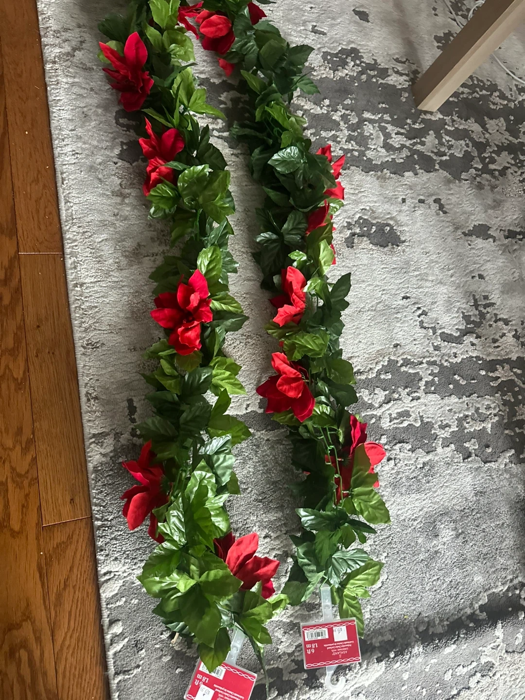 This Ashland Christmas garland features faux poinsettias and greenery. It's 6 feet long, perfect for decorating your home during the holidays. Add a festive touch to your mantel or staircase!