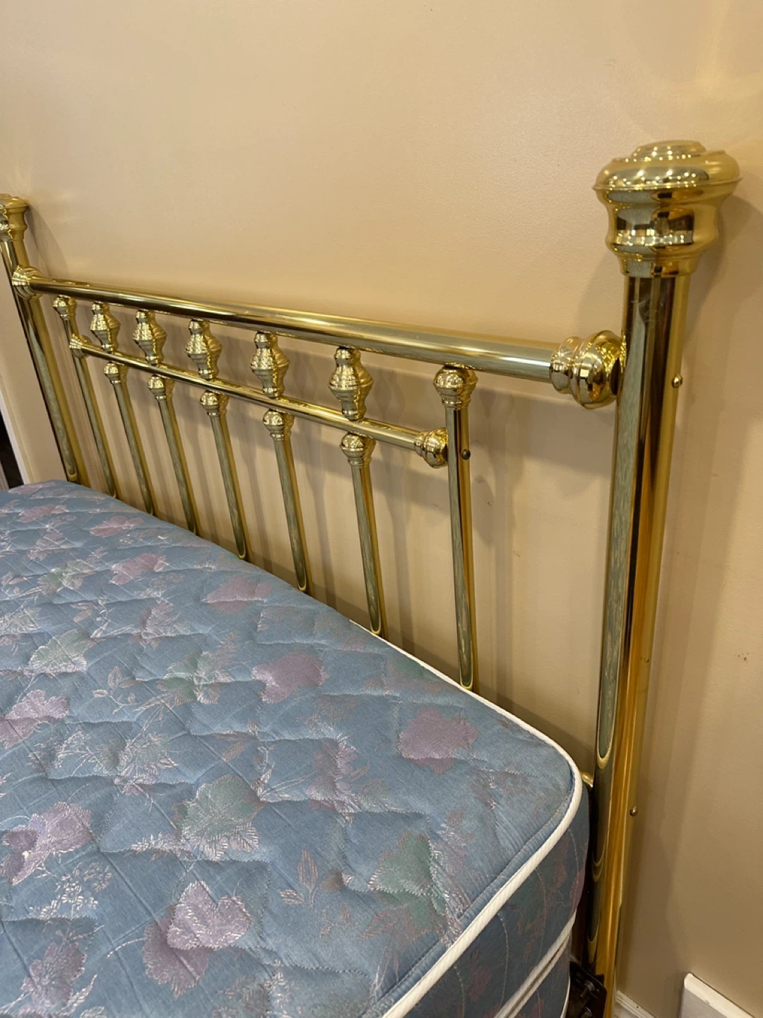 ✔️ Solid brass headboard (Height 48”, Width 64”)
