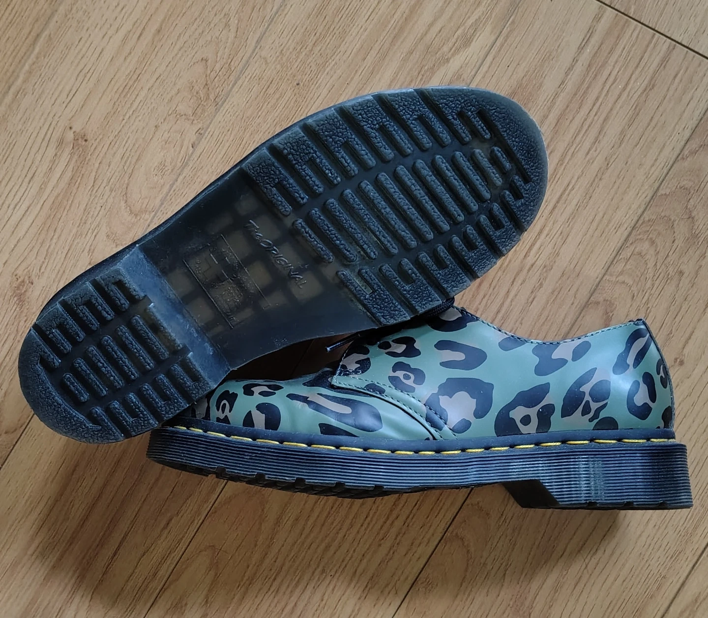 Selling a pair of new Doc Martens shoes in a fun skull leopard print! The size is US Women's 8.5 (EU 40, UK 6.5). The model number is AW501. New, never worn since it's too big for me.