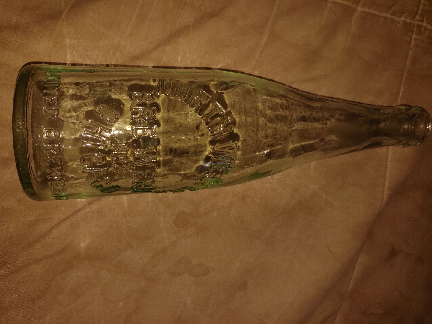 This is an antique glass bottle with "Northwestern Brewery Chicago" embossed on it. The bottle is green glass. It's a collectible piece from a historic brewery.