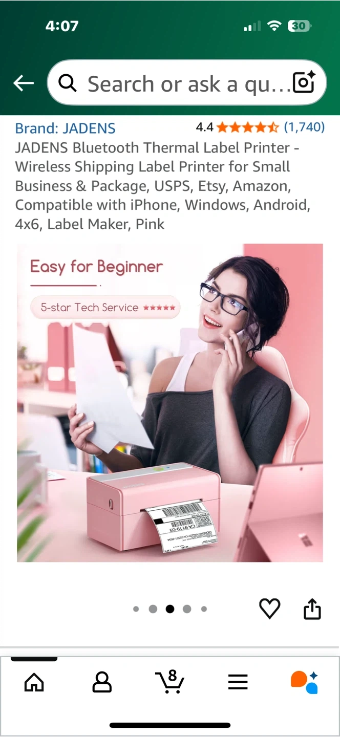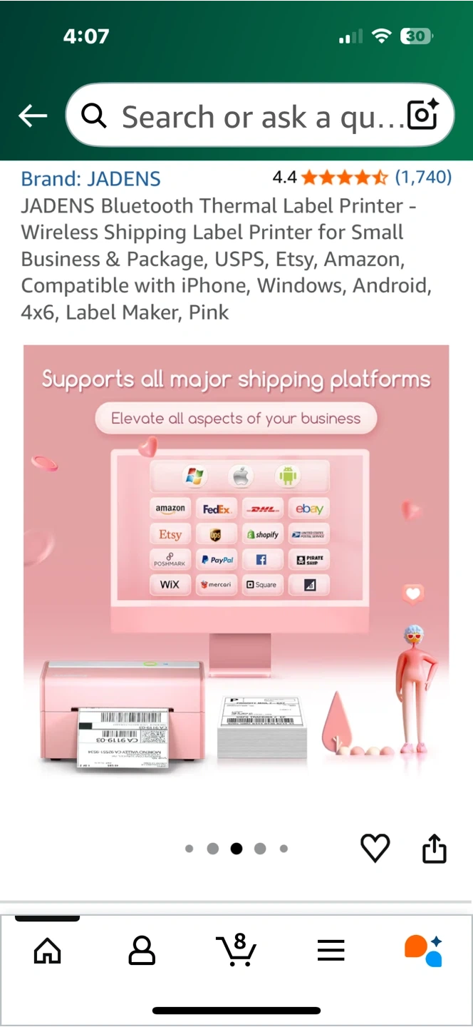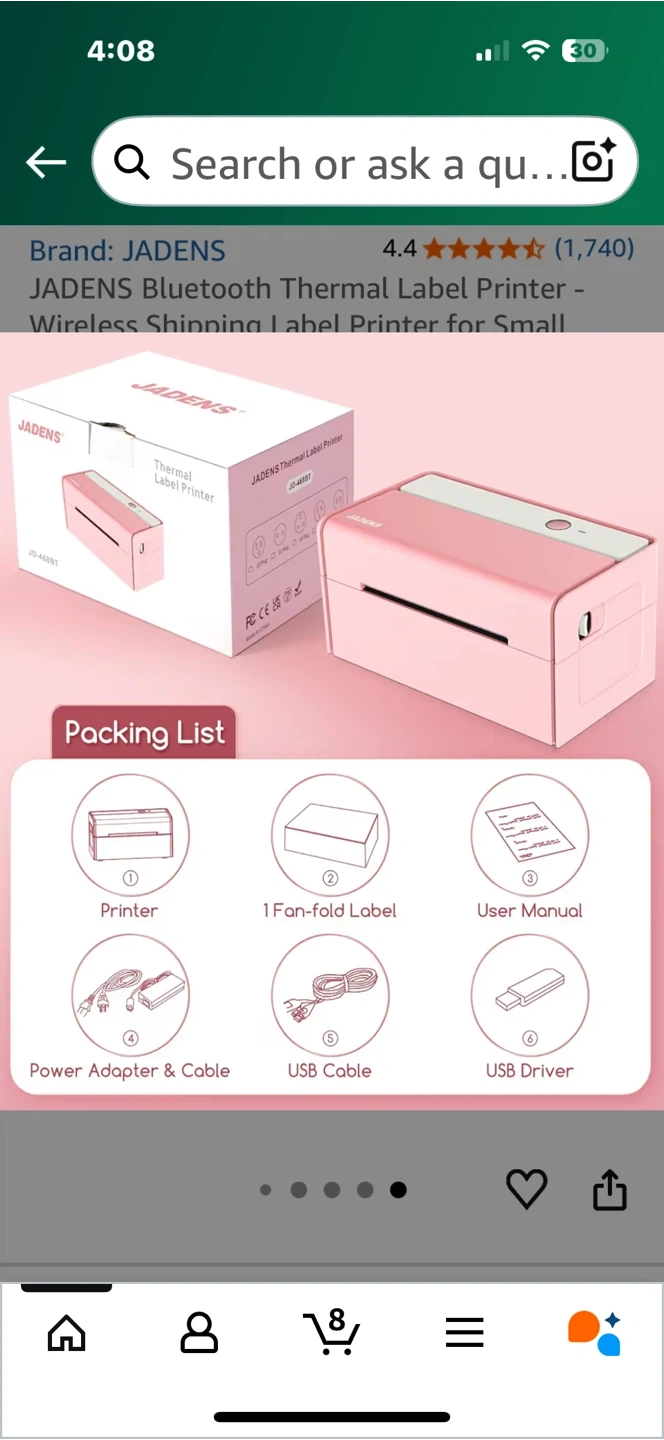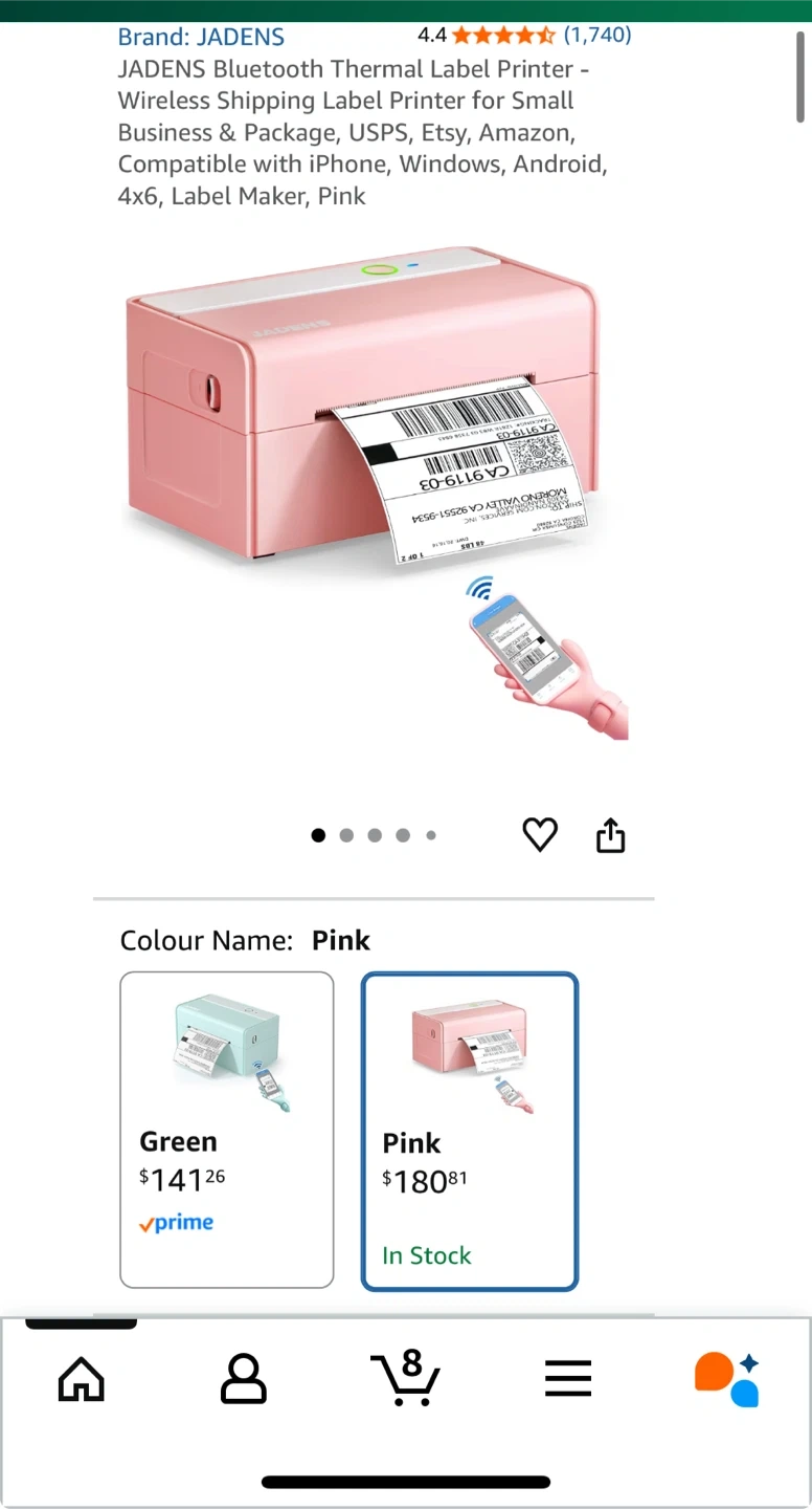Selling a JADENS Bluetooth Thermal Label Printer in pink. It's compatible with iPhone, Windows, Android, 4x6, and is a great label maker. This printer offers high-definition printing without needing toner or ink and supports all major shipping platforms.