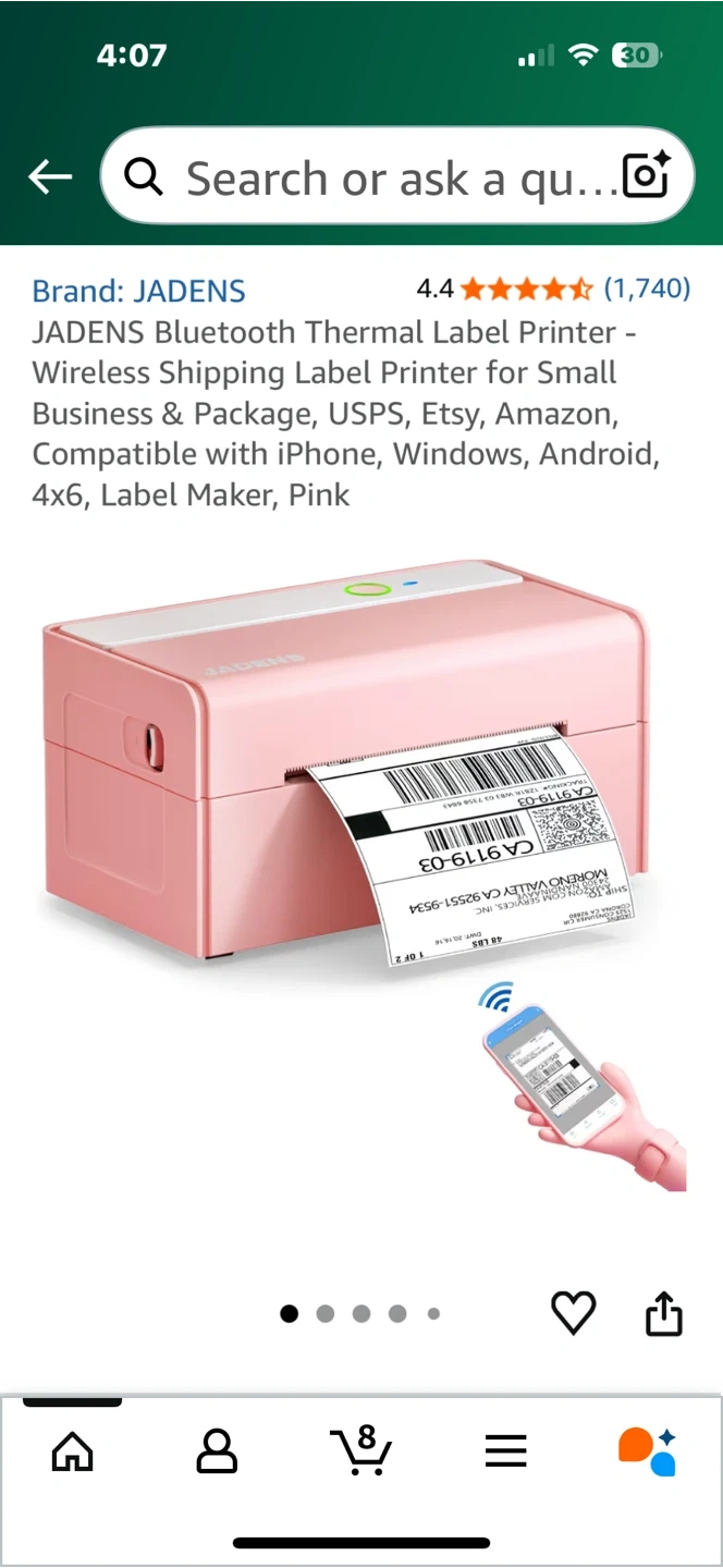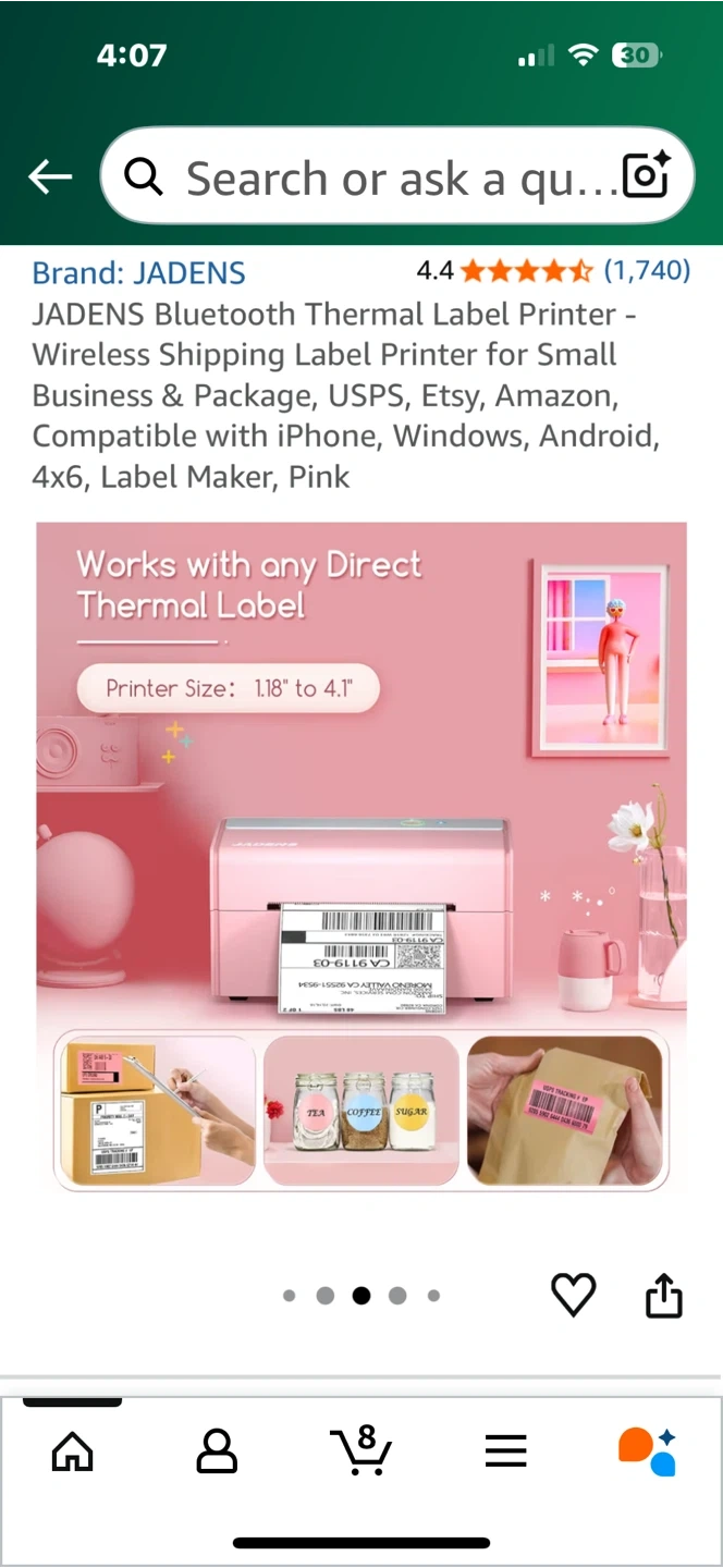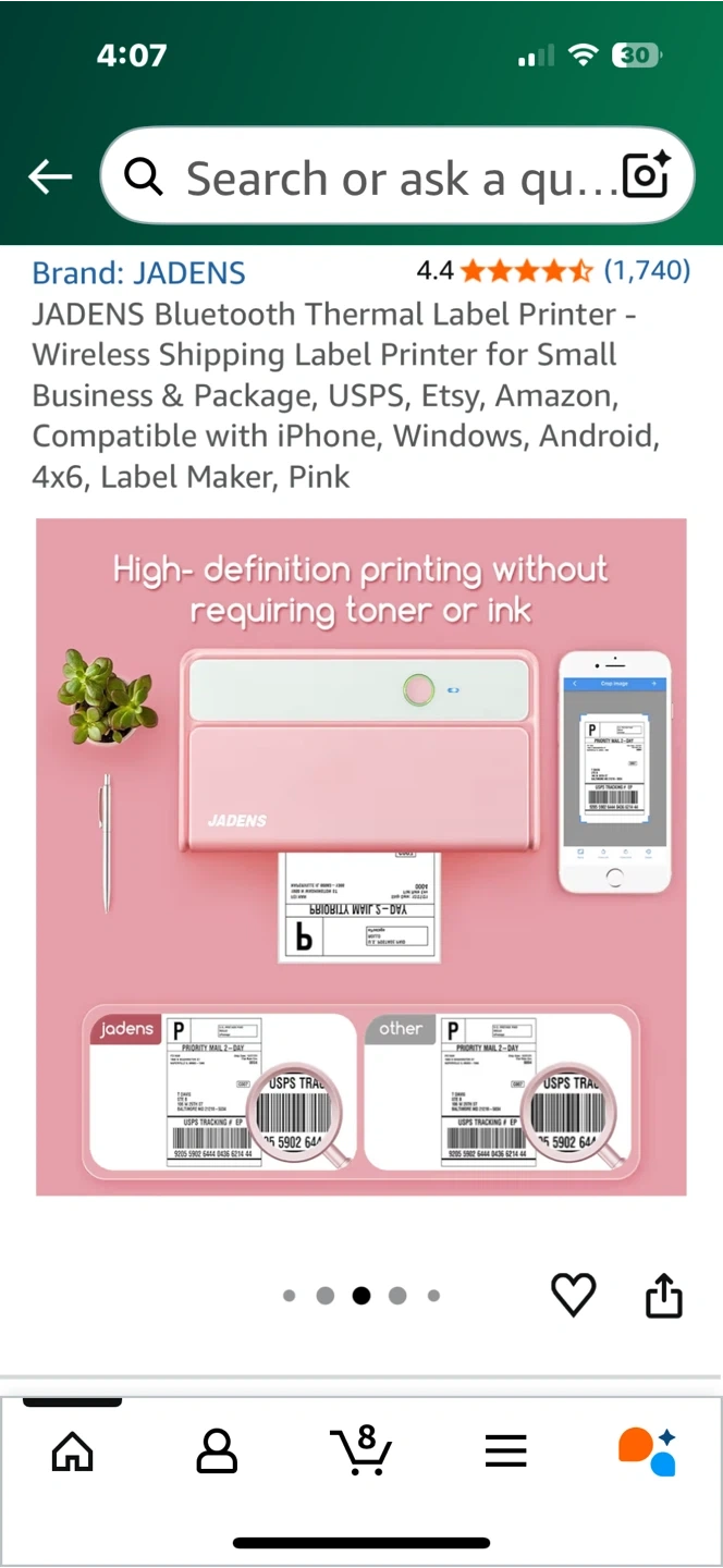 Selling a JADENS Bluetooth Thermal Label Printer in pink. It's compatible with iPhone, Windows, Android, 4x6, and is a great label maker. This printer offers high-definition printing without needing toner or ink and supports all major shipping platforms.