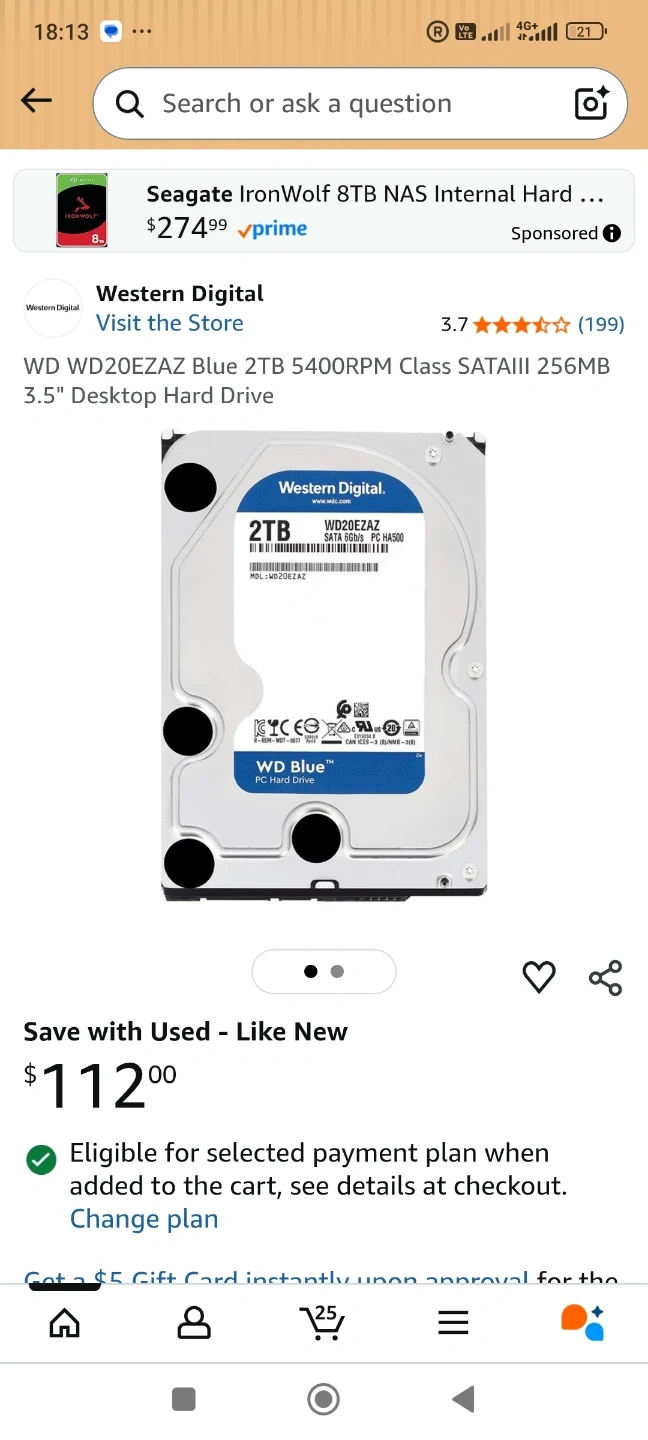 Western Digital 2TB WD Blue PC Hard Drive. Model WD20EZBX. SATA 6Gb/s, 256MB Cache. Manufactured May 27, 2021. Great for your desktop!