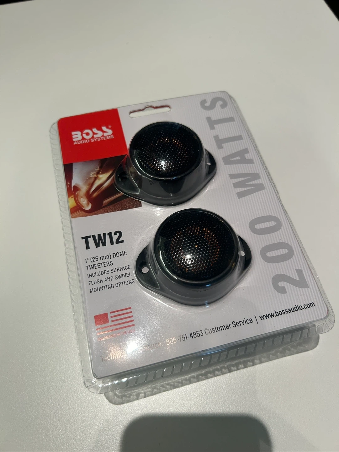 Buy & SellBoss Audio TW12 1" Dome TweetersBoss Audio TW12 1" Dome Tweeters$35Boss Audio TW12 dome tweeters. 1" (25 mm) size. 200 Watts peak power. Includes surface, flush, and swivel mounting options.ConditionNewWHERE TO MEETCorktown, TorontoView MapSELLERverifiedWillCorktown974 reviews0 chats·0 favorites·4 viewsSEND CHAT TO SELLERHi Will! I’m interested in your listing.Hi Will! I’m interested in your listing.Get the Karrot app to chatSign In to chat