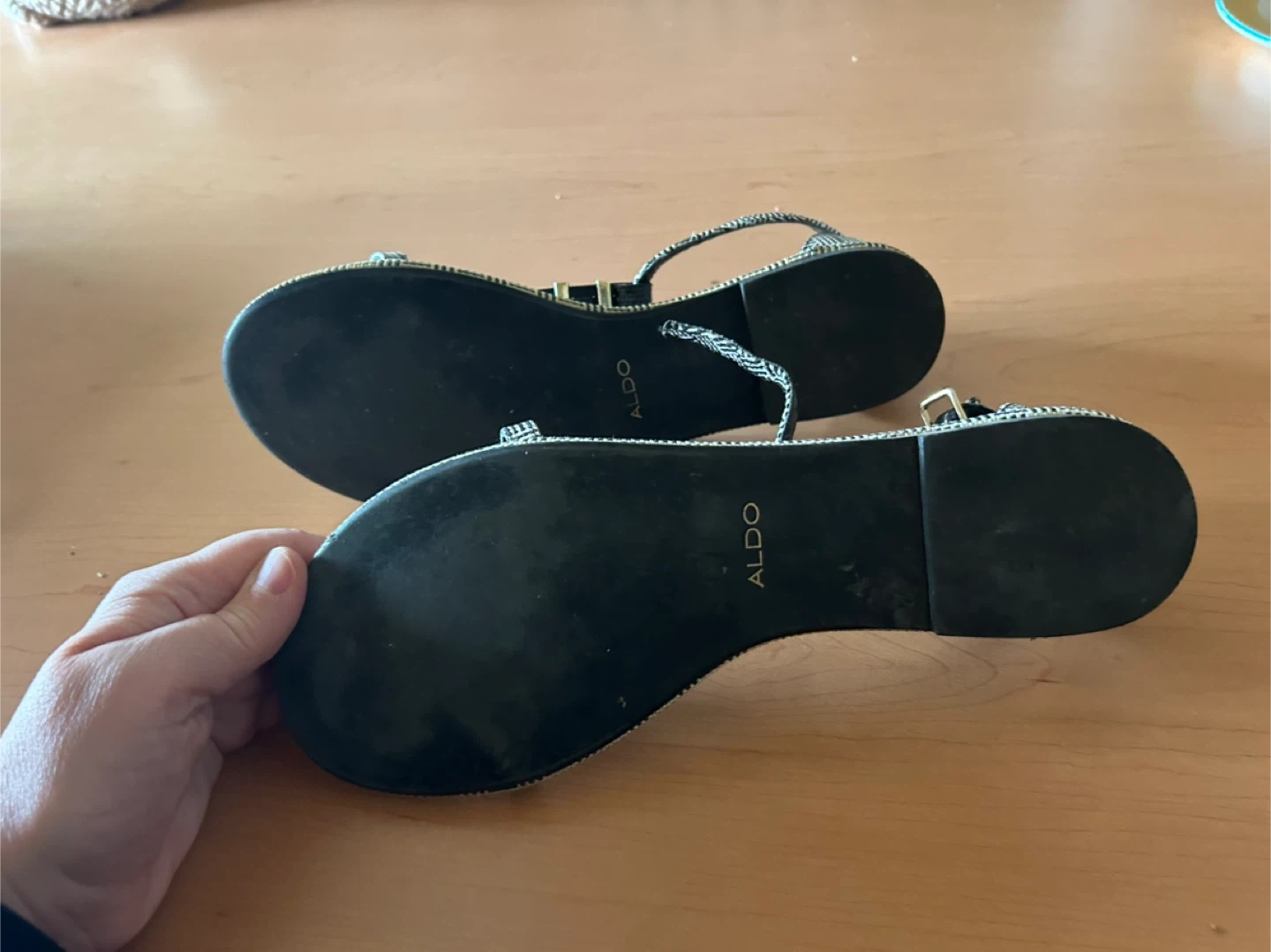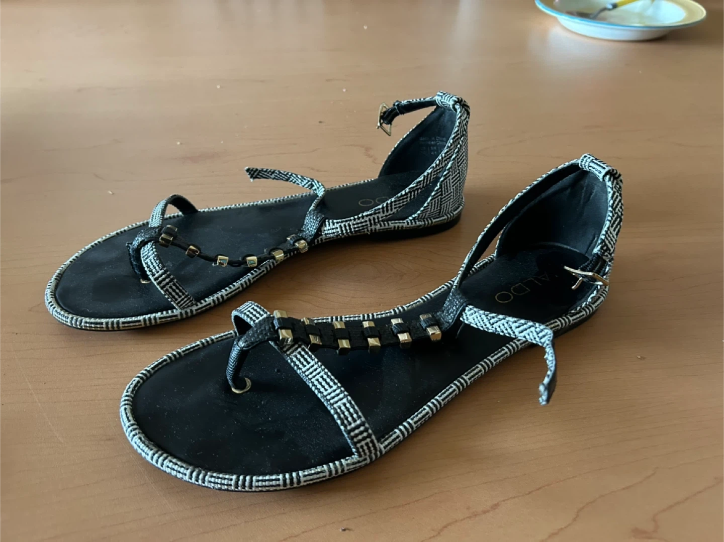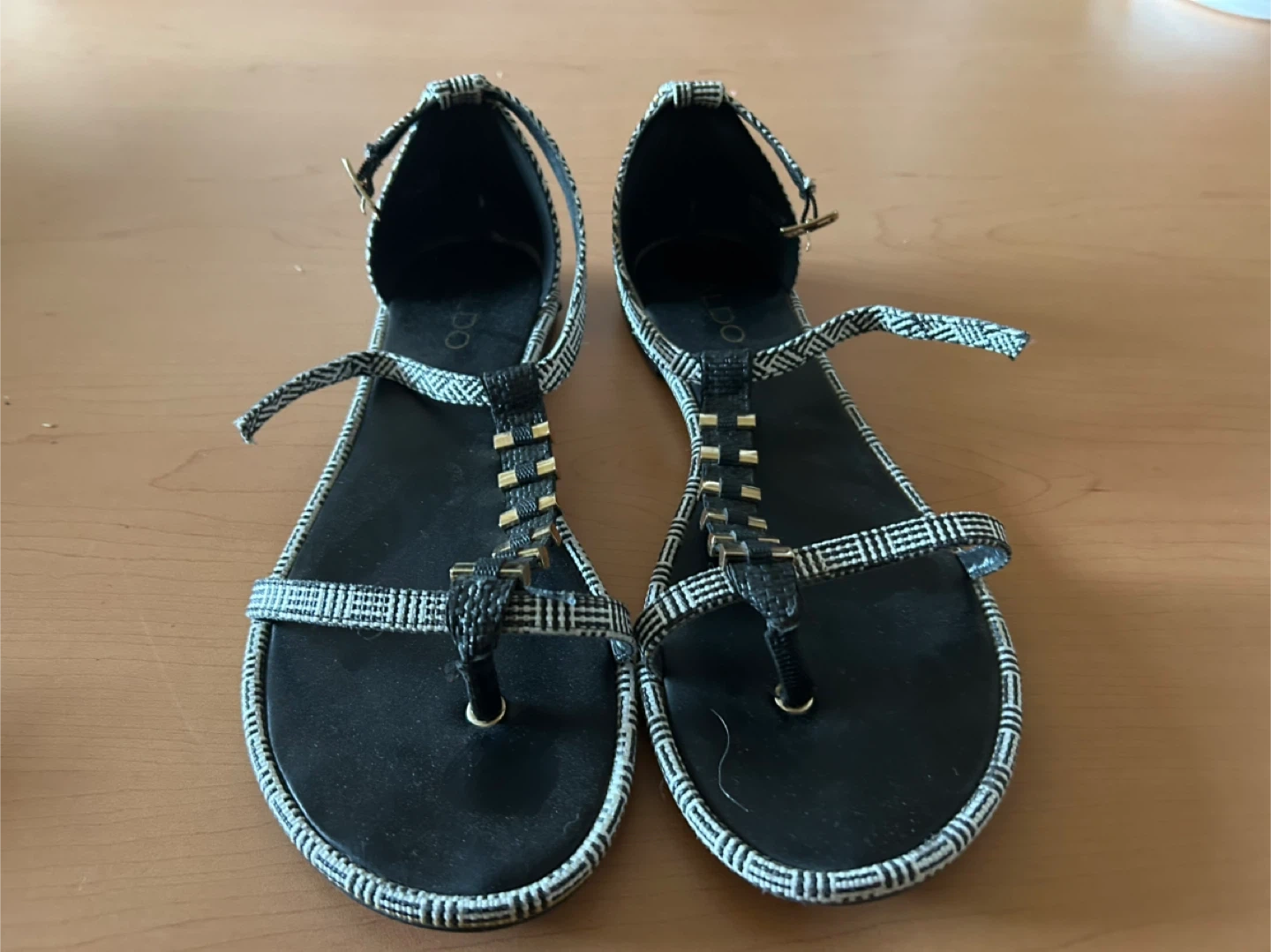10 size ALDO Women's Black and White Patterned Flat Sandals