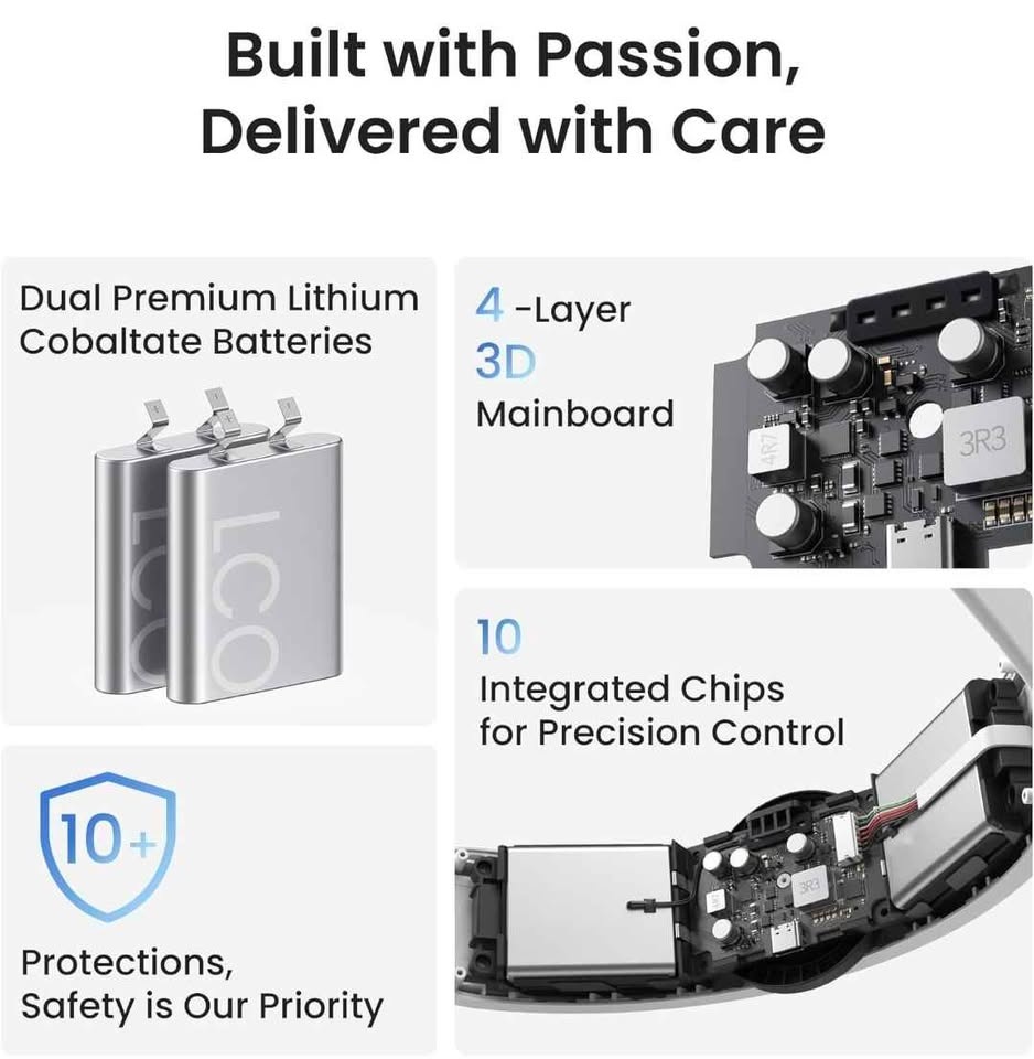 Enjoy up to 3 extra hours of gaming with this KIWI design battery pack. It's designed for maximum performance and to tailor to your needs. The lightweight battery pack helps balance the front and rear of the head strap for a secure fit. Simply turn the rear knob to snugly fit the headset. The enlarged rear support and thickened padding reduce facial pressure, while the balanced weight design eases strain on your head and neck. You can fine-tune the wearing angle up or down to find the perfect position. Built with high-quality materials and multiple safety features, including NTC and UL certifications. It’s easy to wear with quick-adjust dials and a 52-degree damping hinge.