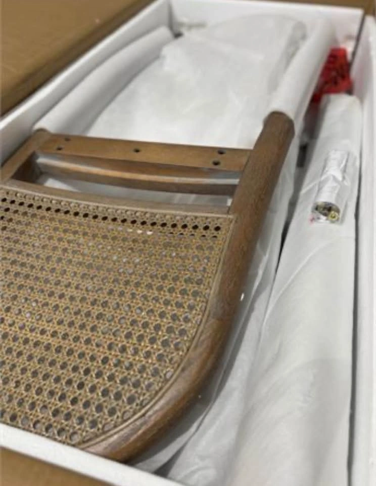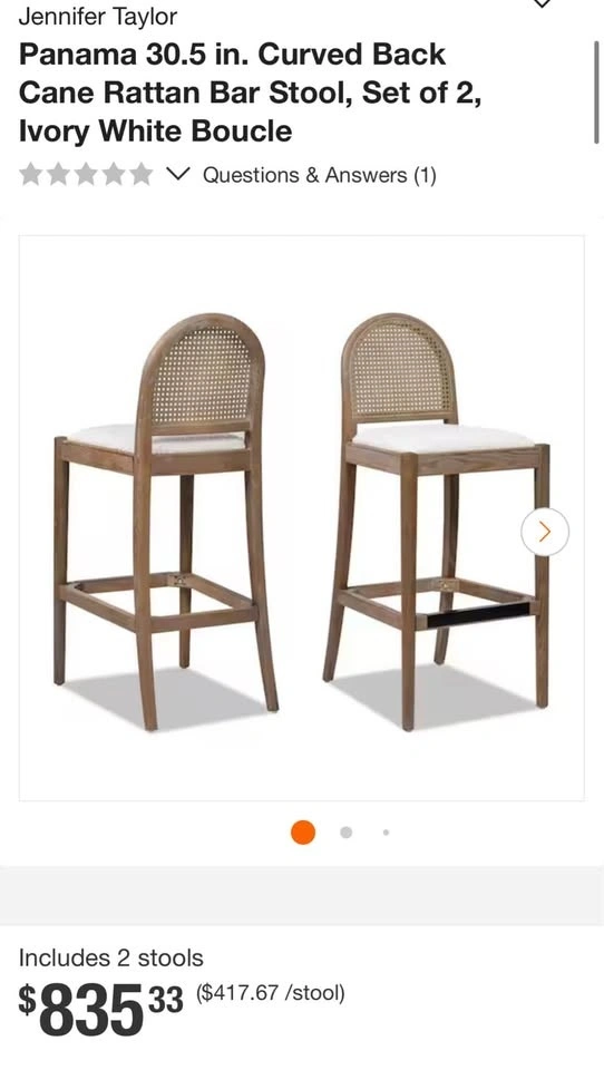 Solid wood and rattan stool set with ivory boucle seats. These are a beautiful addition to any kitchen or island seating. Brand new in box.