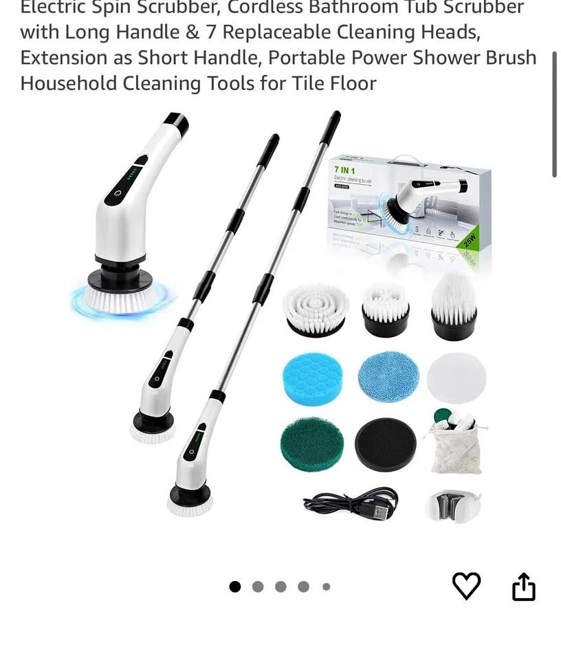 New Electric Spin Scrubber w/ Long Handle & 7 Heads