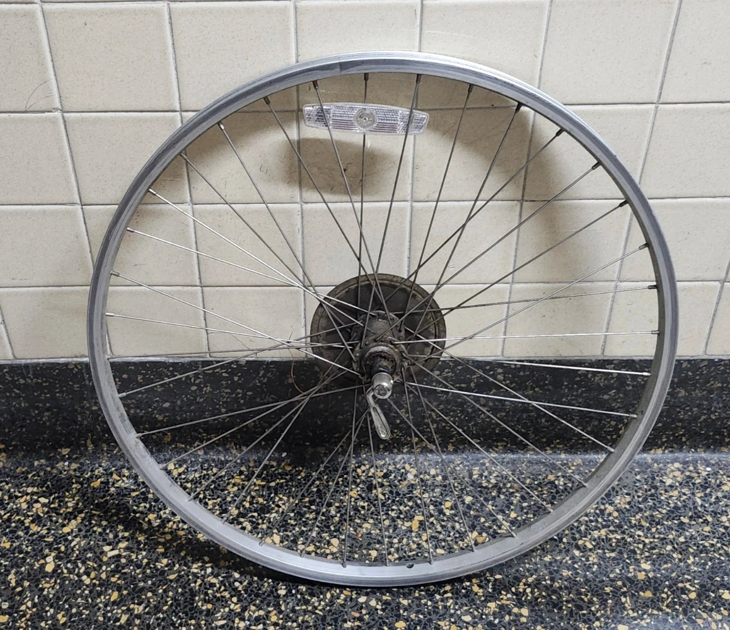 The size of the rims for this bike are 26". The front fork suspension is free moving and not frozen. The front rim is true. Both inner tubes hold air. Both inner tubes will be deflated.