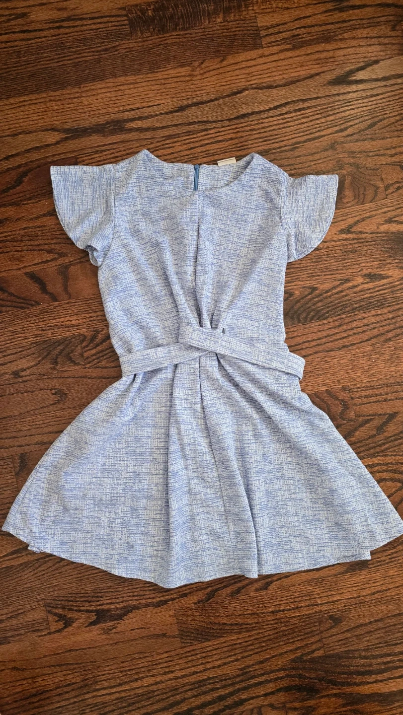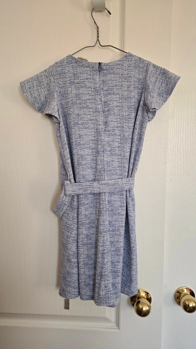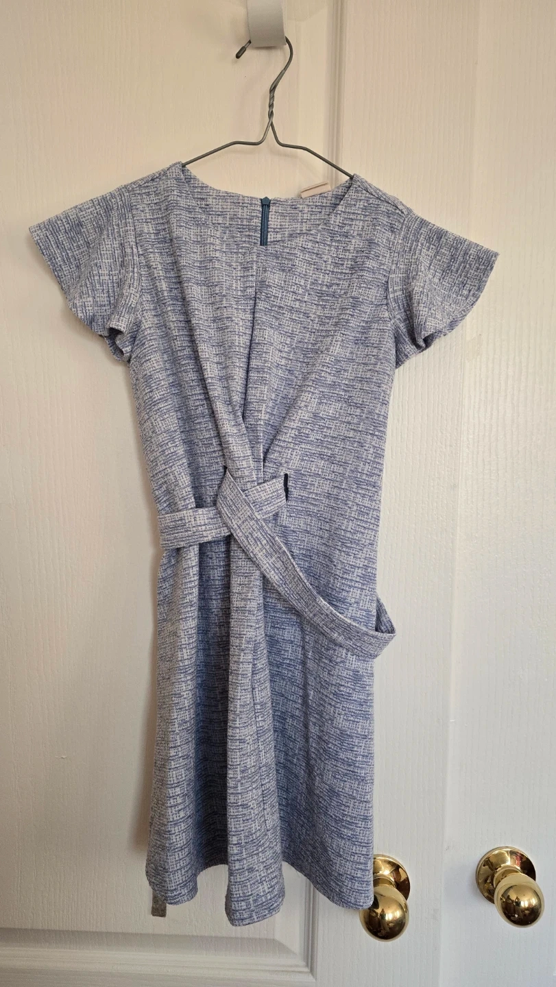 She'll look so stylish in this blue textured dress! It's got short sleeves and a lovely tie-waist detail. Made from a comfy fabric blend.