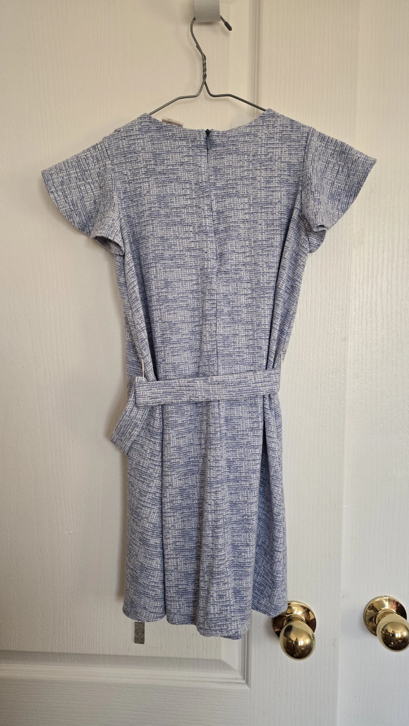 She'll look so stylish in this blue textured dress! It's got short sleeves and a lovely tie-waist detail. Made from a comfy fabric blend.