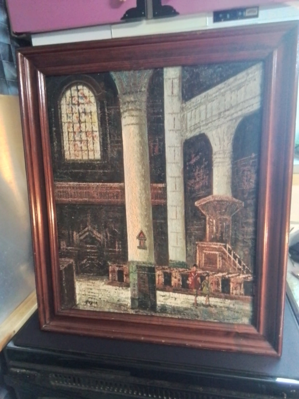 This is a framed painting depicting the Gothic St Mary's Church in Nottingham, offering a unique glimpse into architectural beauty. The artwork is in good condition, capturing the intricate details of the church with rich colours and textures. It would make a great addition to any art collection or as a standalone decorative piece.