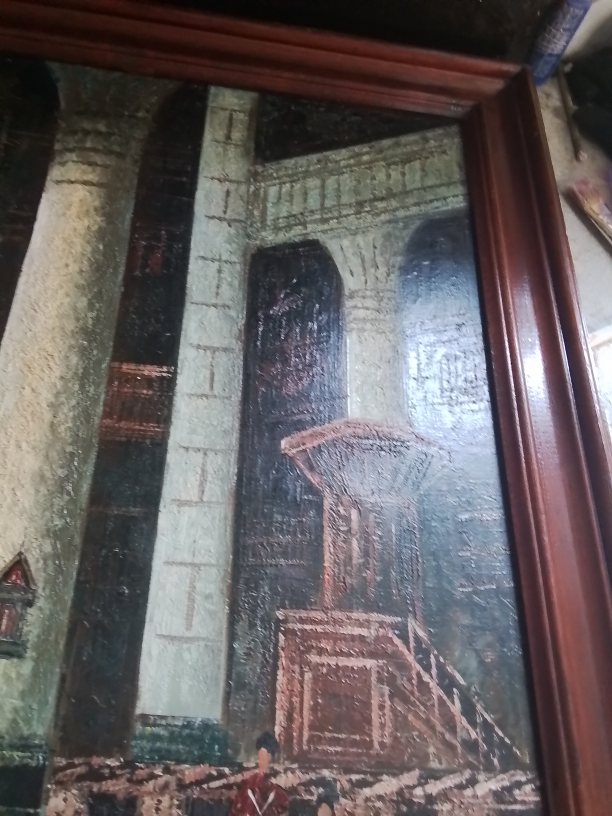 This is a framed painting depicting the Gothic St Mary's Church in Nottingham, offering a unique glimpse into architectural beauty. The artwork is in good condition, capturing the intricate details of the church with rich colours and textures. It would make a great addition to any art collection or as a standalone decorative piece.