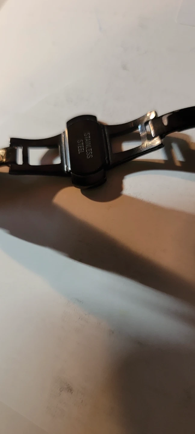 This is a black stainless steel Emporio Armani chronograph watch. It's a men's watch with a metal band. It's made of solid stainless steel.obo need battery